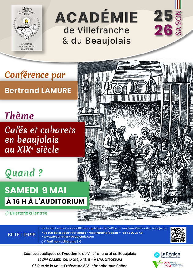 Au XIXe siècle, le café, le cabaret, peuvent être perçus comme des piliers de notre société, et cela des villages aux grandes villes. Qu’en est-il pour la ville de Villefranche sur Saône et du Beaujolais ?