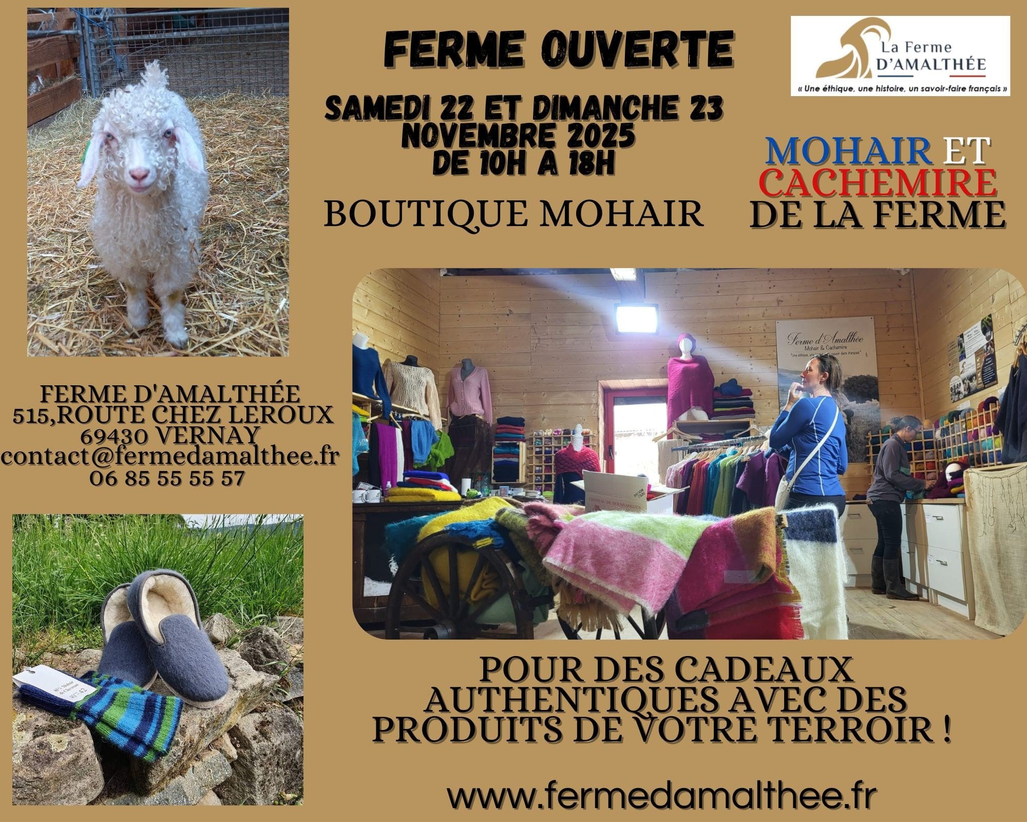 La boutique de la ferme sera ouverte les samedi 22 et dimanche 23 novembre de 10h à 18h ! Venez (re)-découvrir nos produits en mohair et cachemire pour des cadeaux tout doux et bien chauds ! Plaids, chaussettes, pulls ou encore chaussons vous y trouverez votre bonheur…