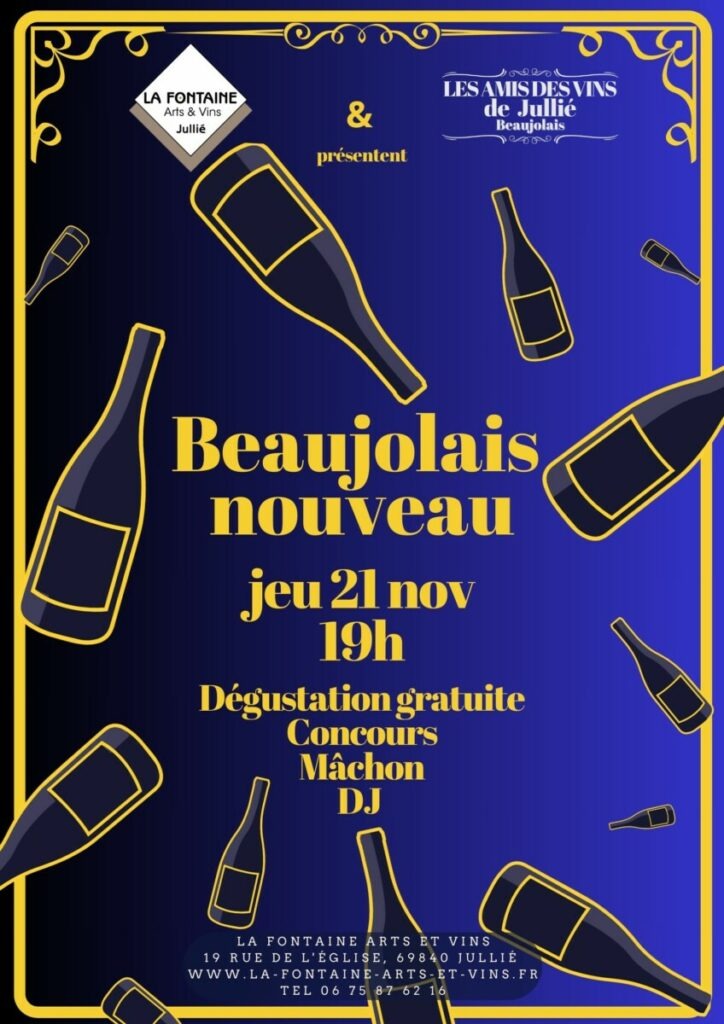 Les Amis des Vins de Jullié et la Fontaine Arts et Vins s’associent pour vous proposer une soirée « Beaujolais Nouveau », festive, gourmande, conviviale et dansante.