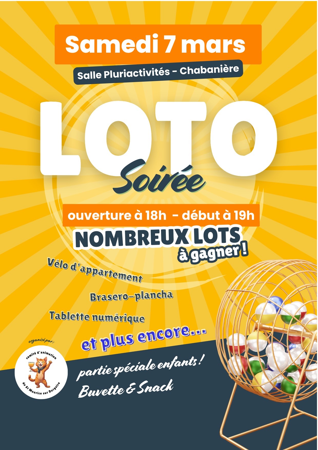 Soirée loto proposée par "le Comité d'Animation de Saint Maurice sur Dargoire".