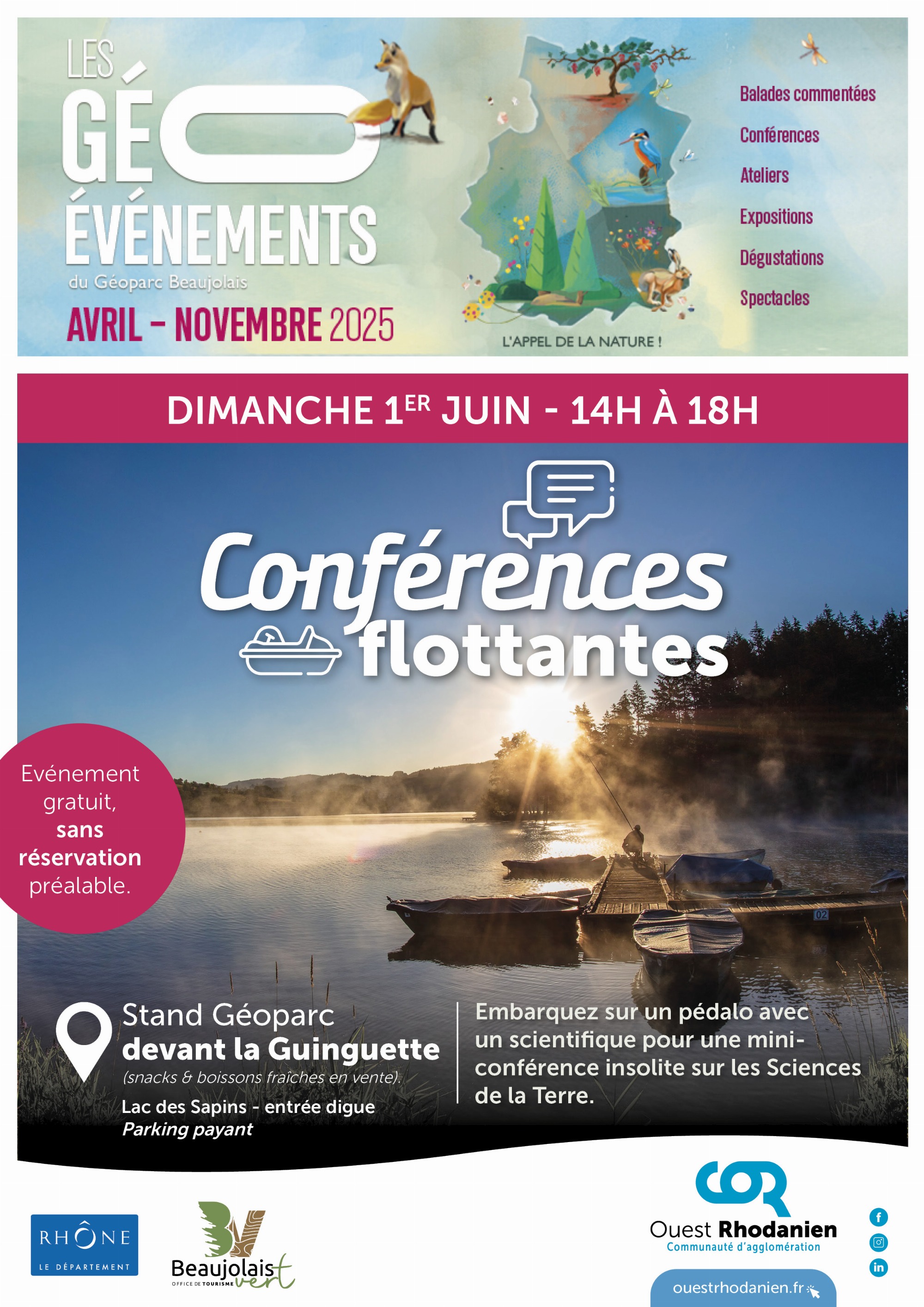 Au cœur du Beaujolais Vert, embarquez sur un pédalo avec un·e scientifique en Sciences de la Terre pour une mini-conférence insolite de 20 min.