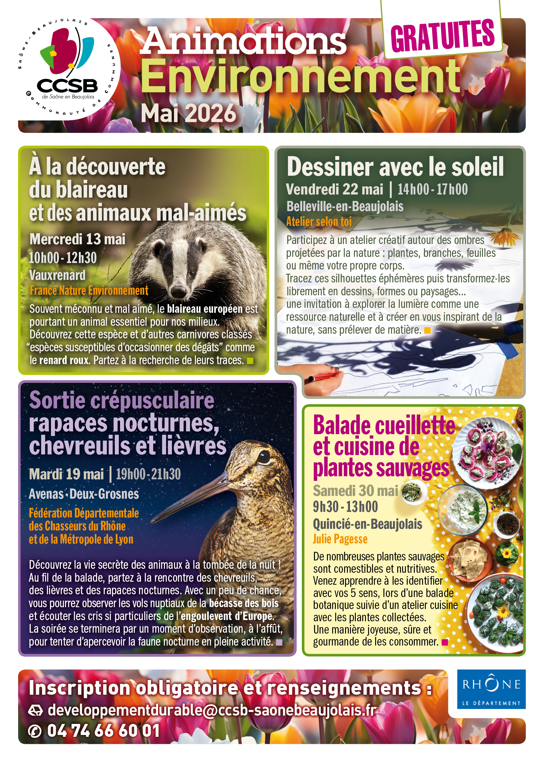Le lieu du rendez-vous sera communiqué après la réservation : developpementdurable@ccsb-saonebeaujolais.fr