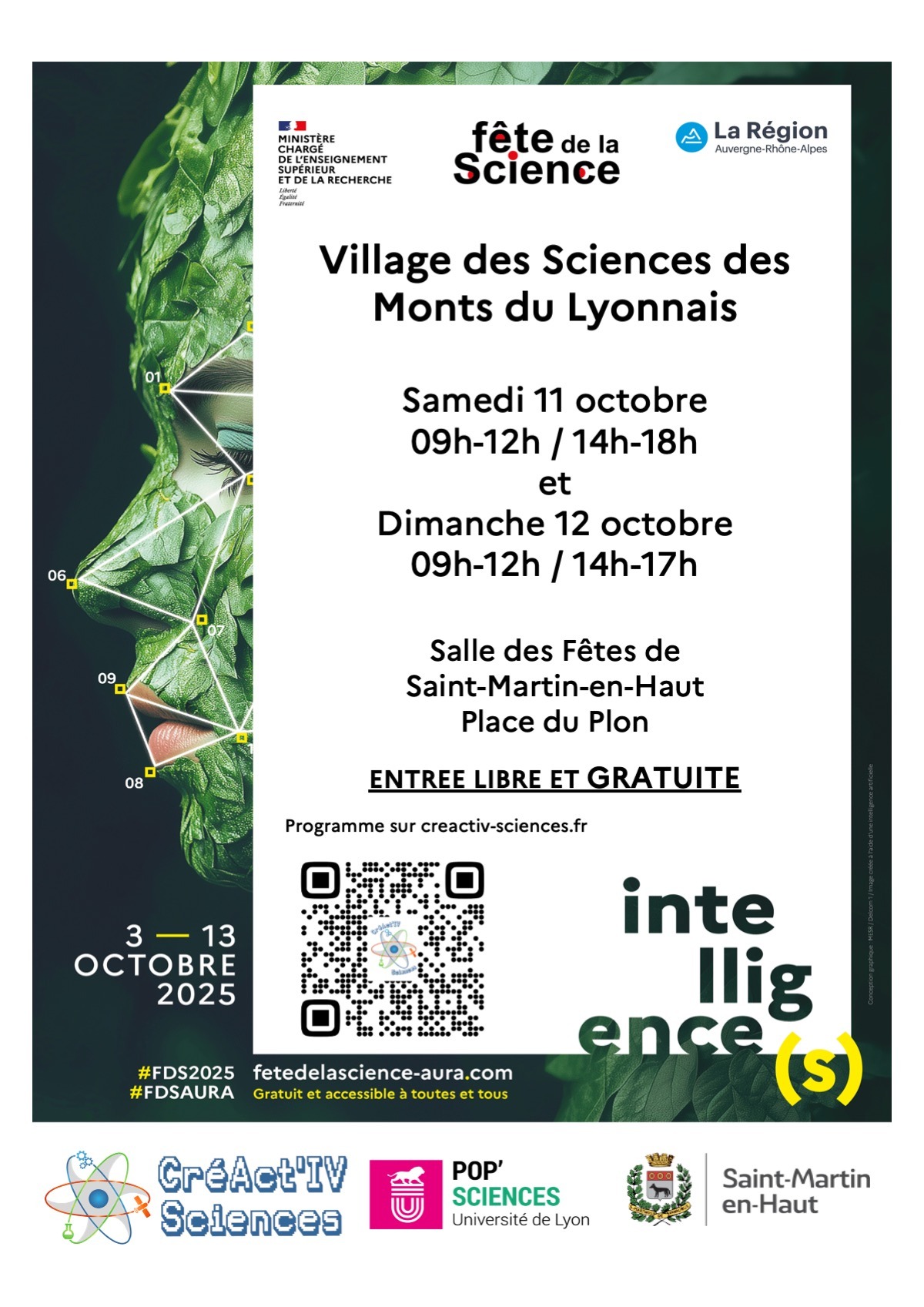 Le Village des Sciences des Monts du Lyonnais vous invite à plonger au cœur des sciences avec de nombreuses animations scientifiques présentes. Programme complet disponible sur creactiv-sciences.fr.