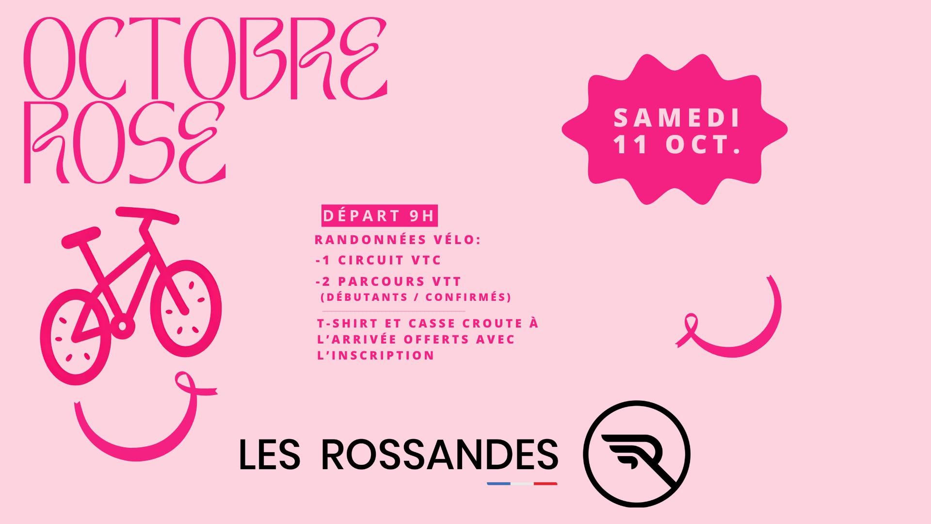 Au programme 1 circuits VTC et 2 circuits VTT, débutants ou confirmés avec T-Shirt et casse-croûte offerts à l'arrivée. Bébéfices reversés à la lutte contre le cancer du sein.