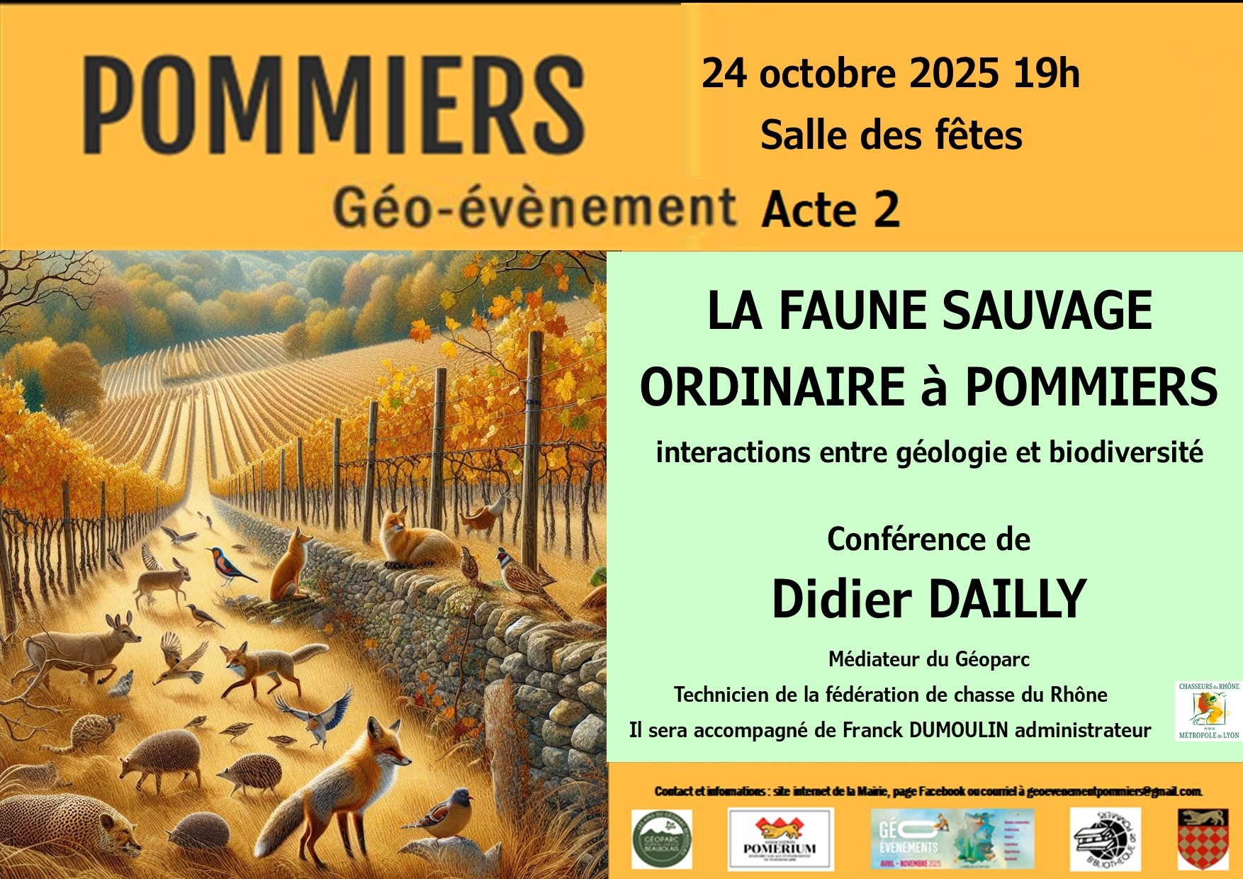 Découvrez les interactions entre géologie et biodiversité. Conférence par Didier Dailly, médiateur du Géoparc et technicien de la fédération de chasse du Rhône. Il sera accompagné de Franck Dumoulin, administrateur.