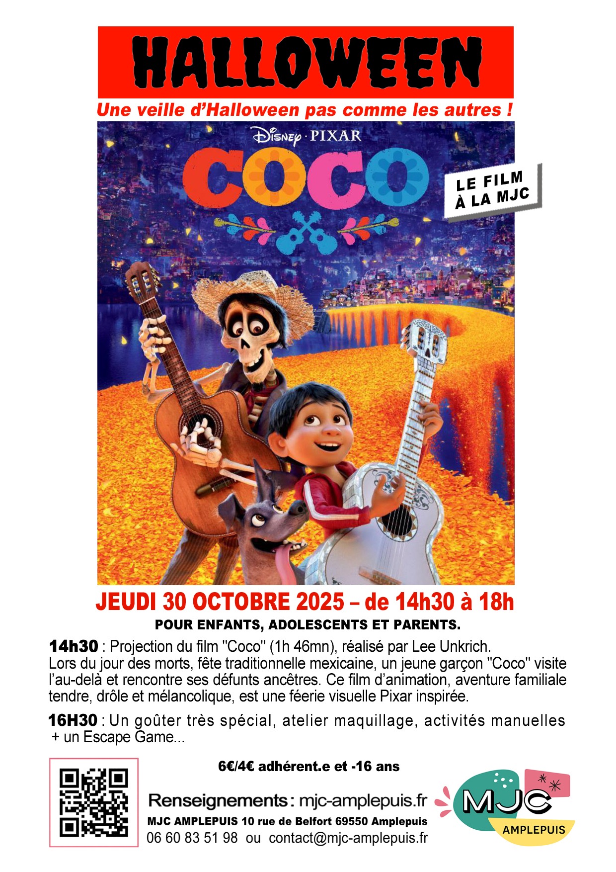 14h30 : Projection du film "Coco" (1h 46mn), réalisé par Lee Unkrich.