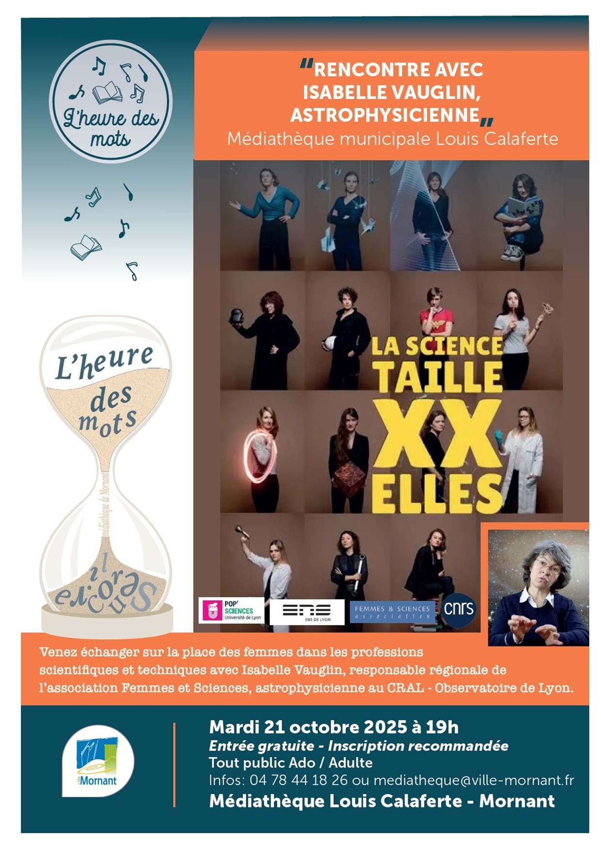 Venez échanger sur la place des femmes dans les professions scientifiques et techniques avec Isabelle Vauglin, responsable de l'association Femmes et Sciences, astrophysicienne CRAL-Observatoire de Lyon.