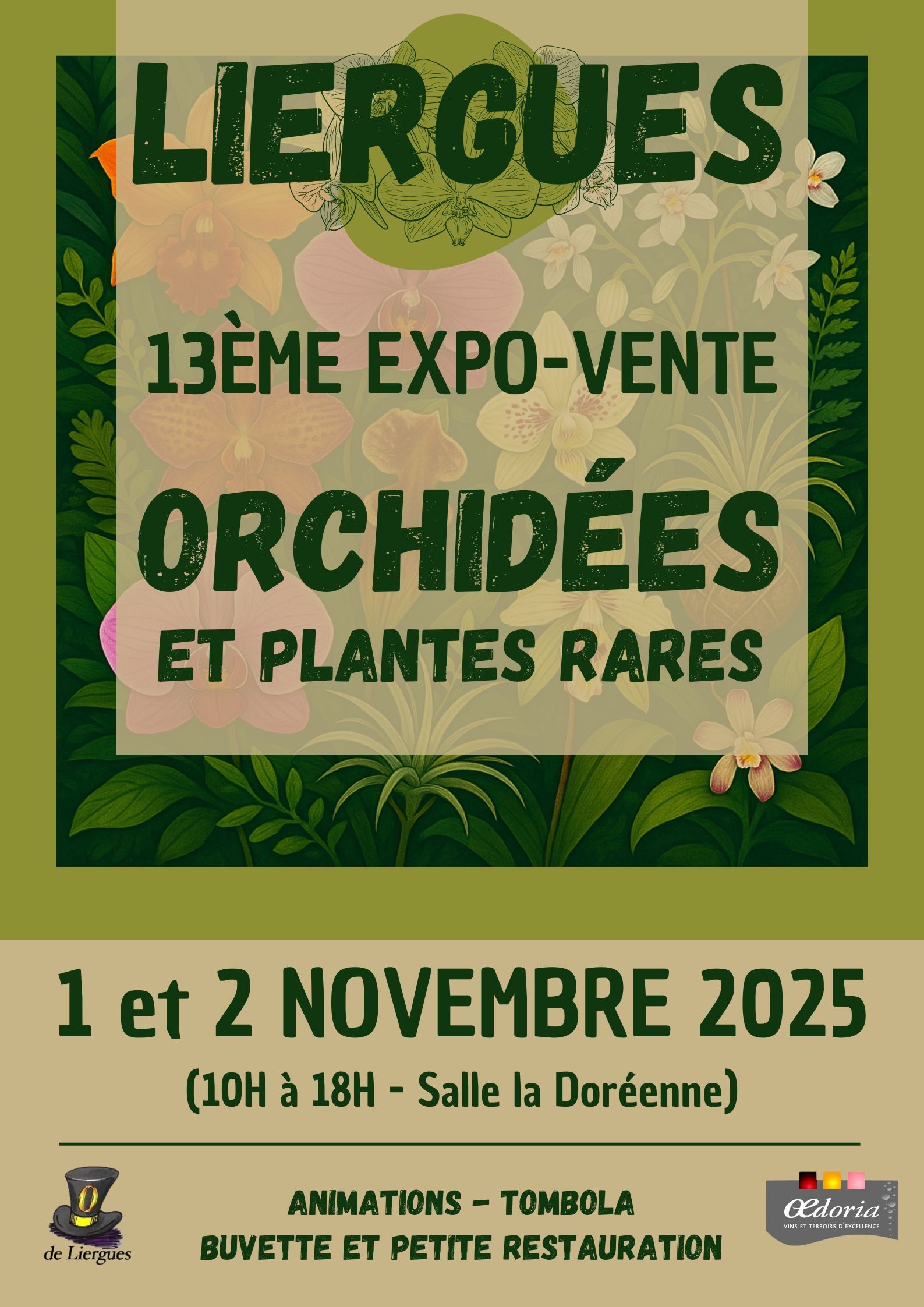 La passion des plantes revient à Liergues ! La 13ᵉ édition du Salon des Orchidées et Plantes Rares se tiendra les samedi 1er et dimanche 2 novembre 2025 à la salle La Doréenne.