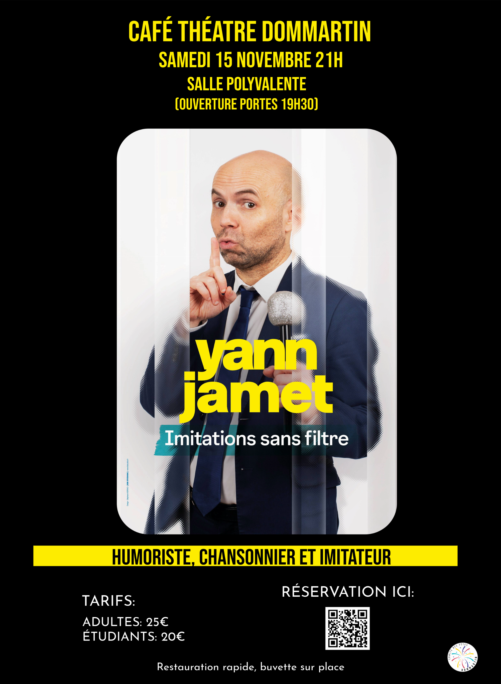 Le Comité des Fêtes de Dommartin vous donne rendez-vous pour une soirée exceptionnelle avec Yann Jamet : humoriste, chansonnier et imitateur hors pair !