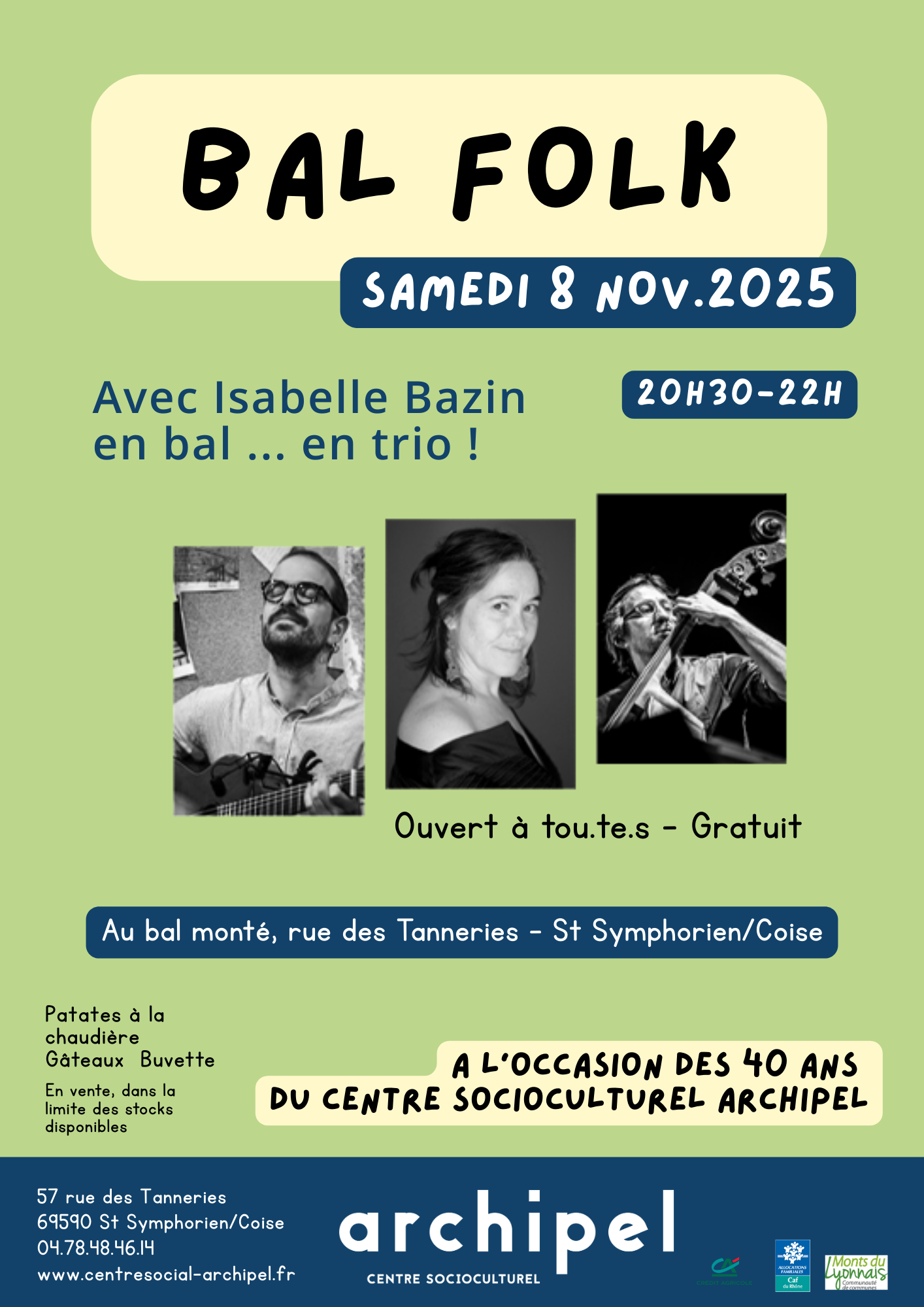 De 20h30 à 22h : Bal Folk avec Isabelle Bazin, en bal, en trio !