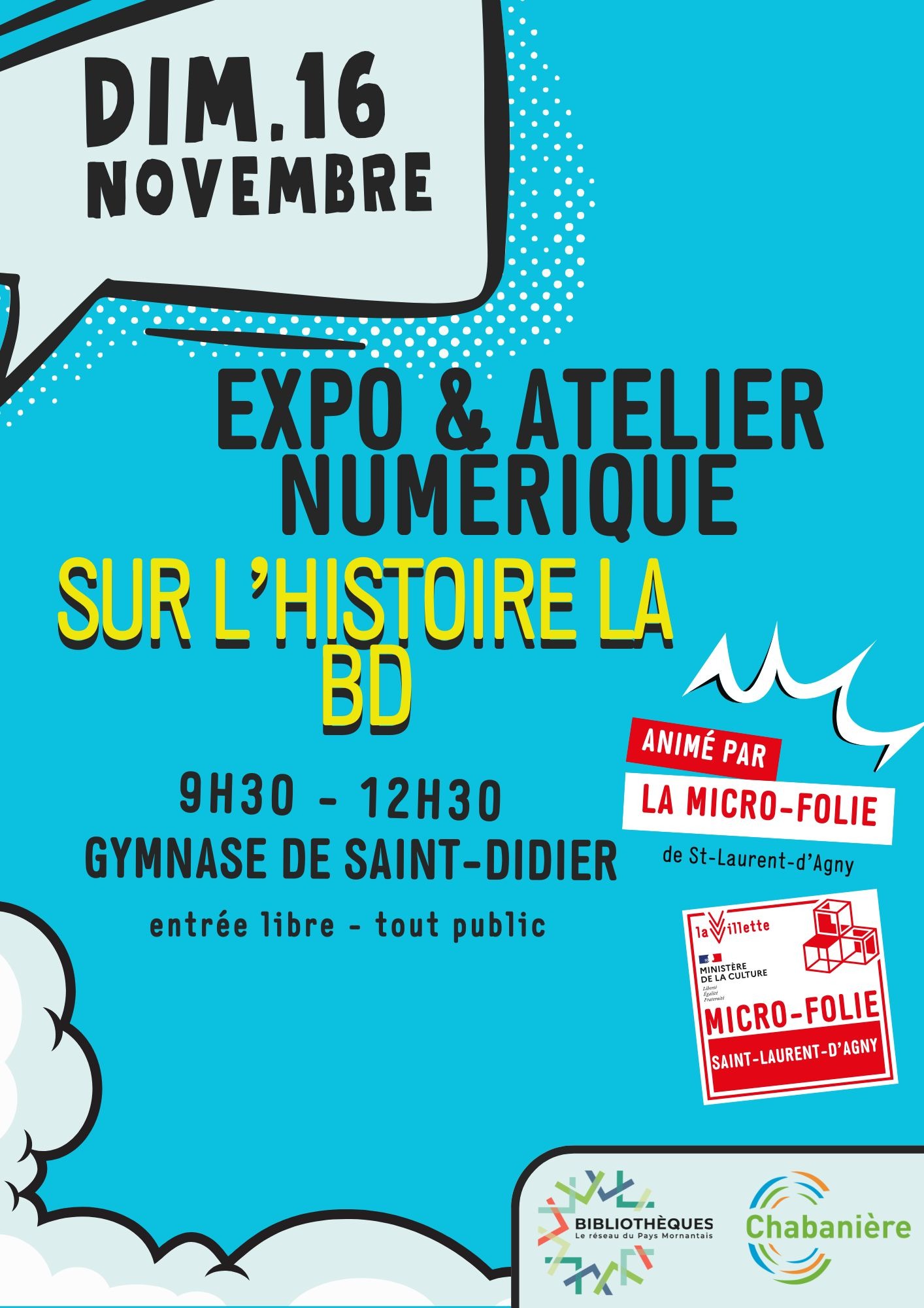 En parallèle de la Foire aux livres de Chabanière, retrouvez La Micro-Folie de Saint-Laurent-d’Agny pour une expo et un atelier numérique sur l’histoire de la bande-dessinée.