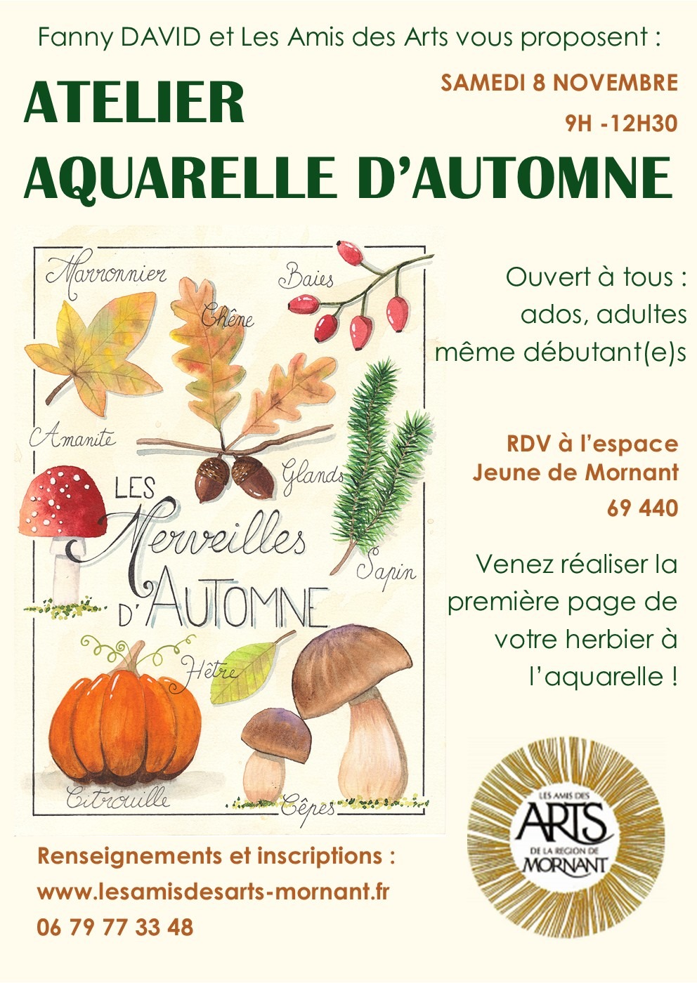 Ce premier atelier avec Fanny David a pour thème "Aquarelle d'automne" à l' Espace Jeune de mornant /salle Donzel.