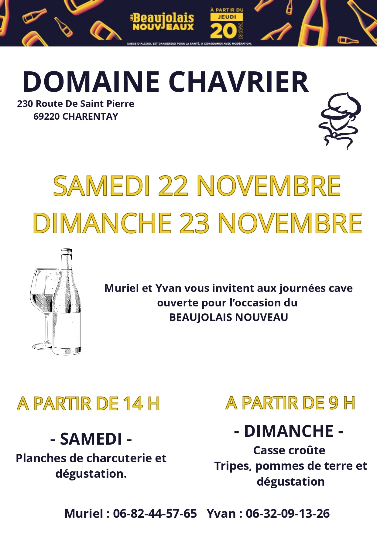 Venez découvrir les vins du domaine Chavrier lors de leur porte ouverte et fêtez le Beaujolais Nouveau.