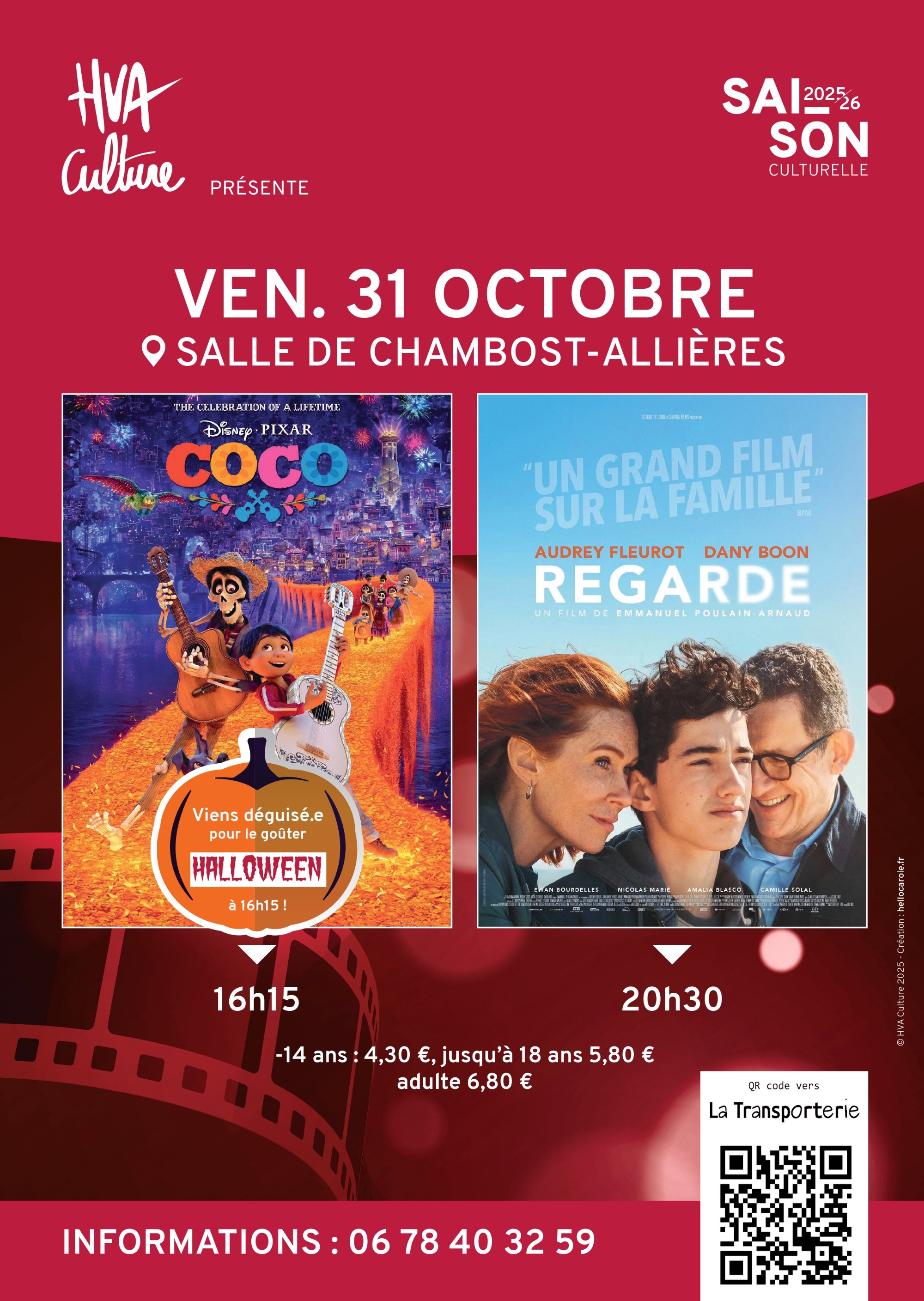 Vendredi 31 octobre Salle de Chambost Allières, goûter spécial HALLOWEEN à 16H15 (venez déguisés), puis projection du film « COCO » à 17H30.