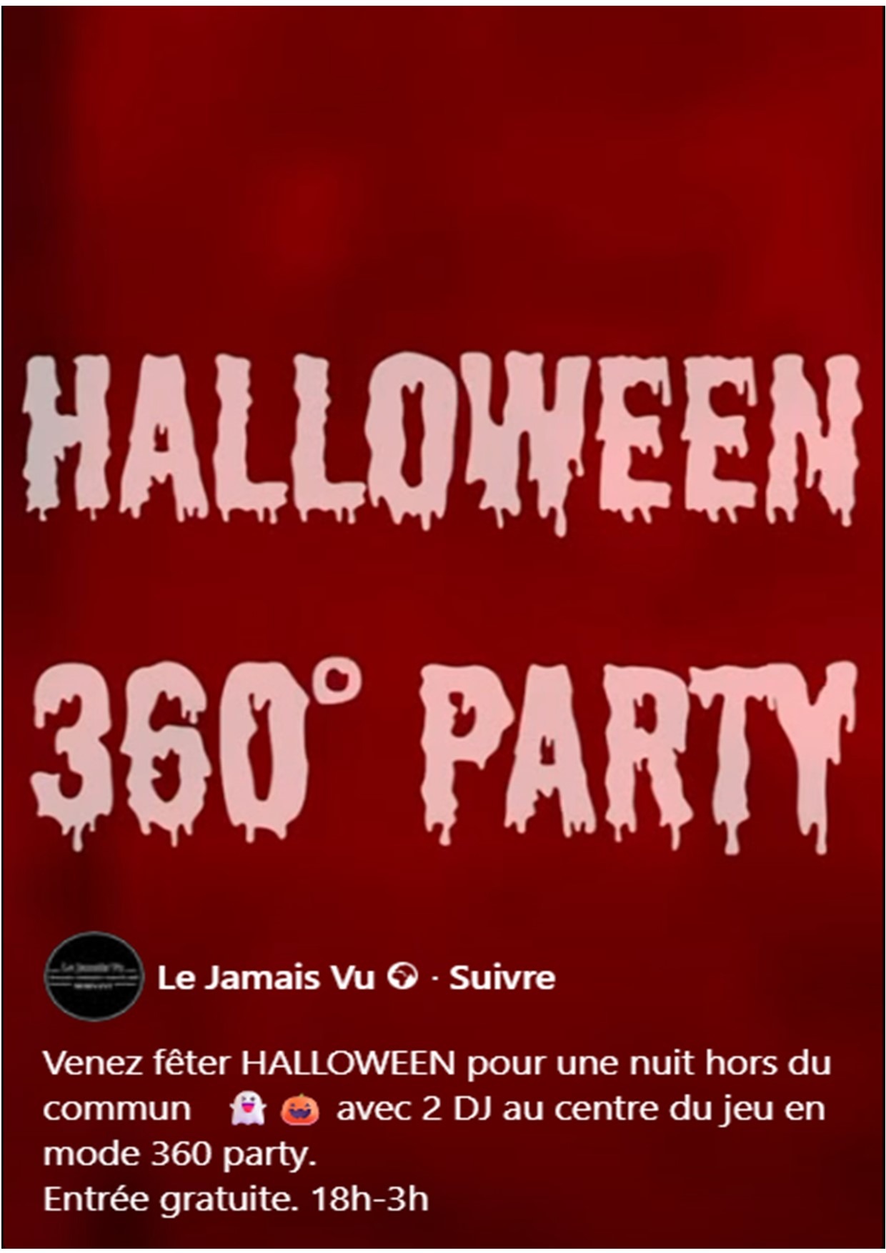Vendredi 31 octobre 2025 de 18h à 3h.