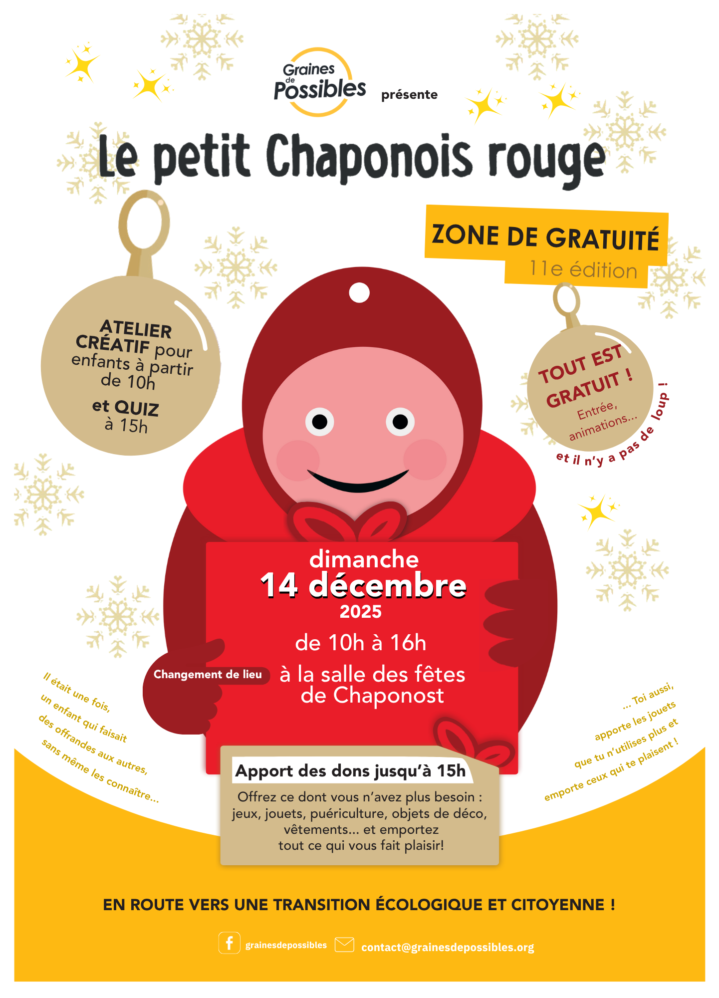 Ne manquez pas la 11ème édition de la Zone de gratuité qui se tiendra dimanche 14 décembre à la salle des fêtes de Chaponost.