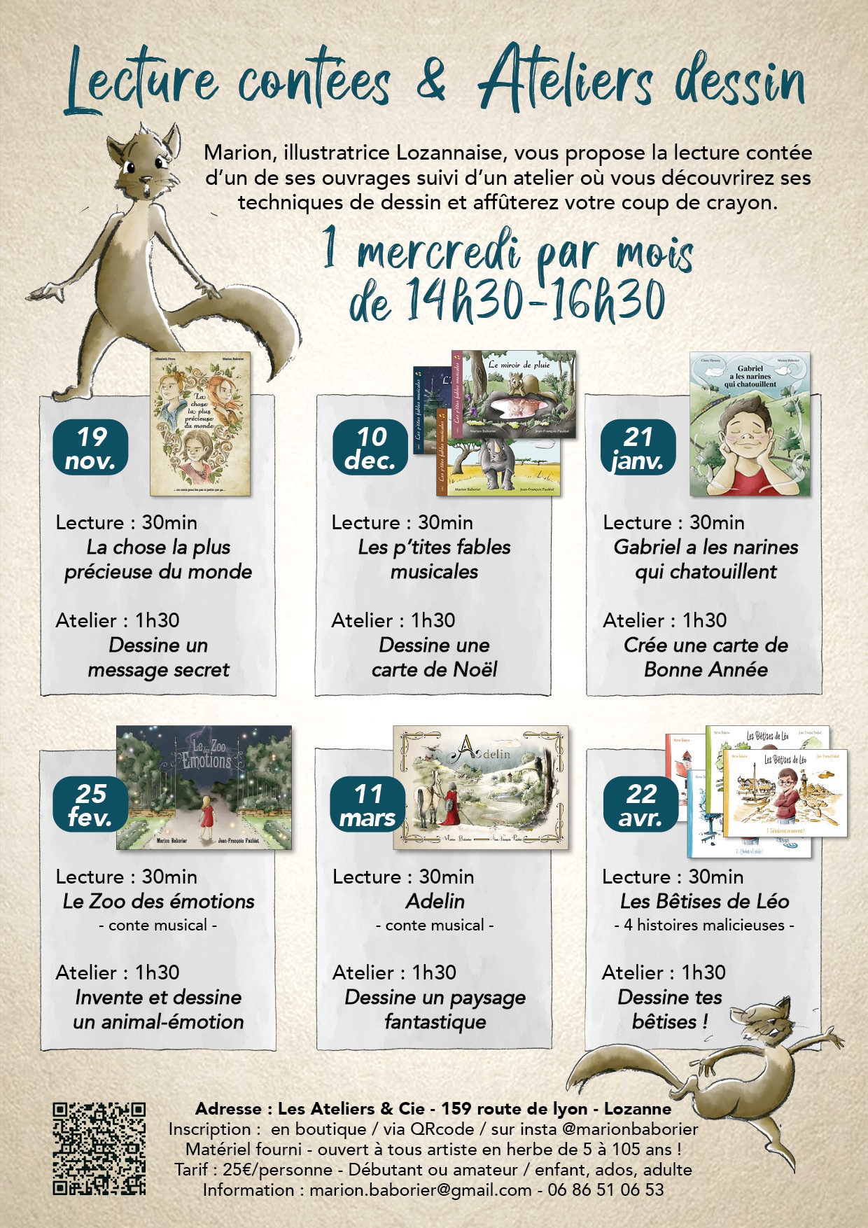 Marion Baborier, illustratrice Lozannaise, vous propose la lecture contée d’un de ses ouvrages suivi d’un atelier où vous découvrirez ses techniques de dessin et affûterez votre coup de crayon.