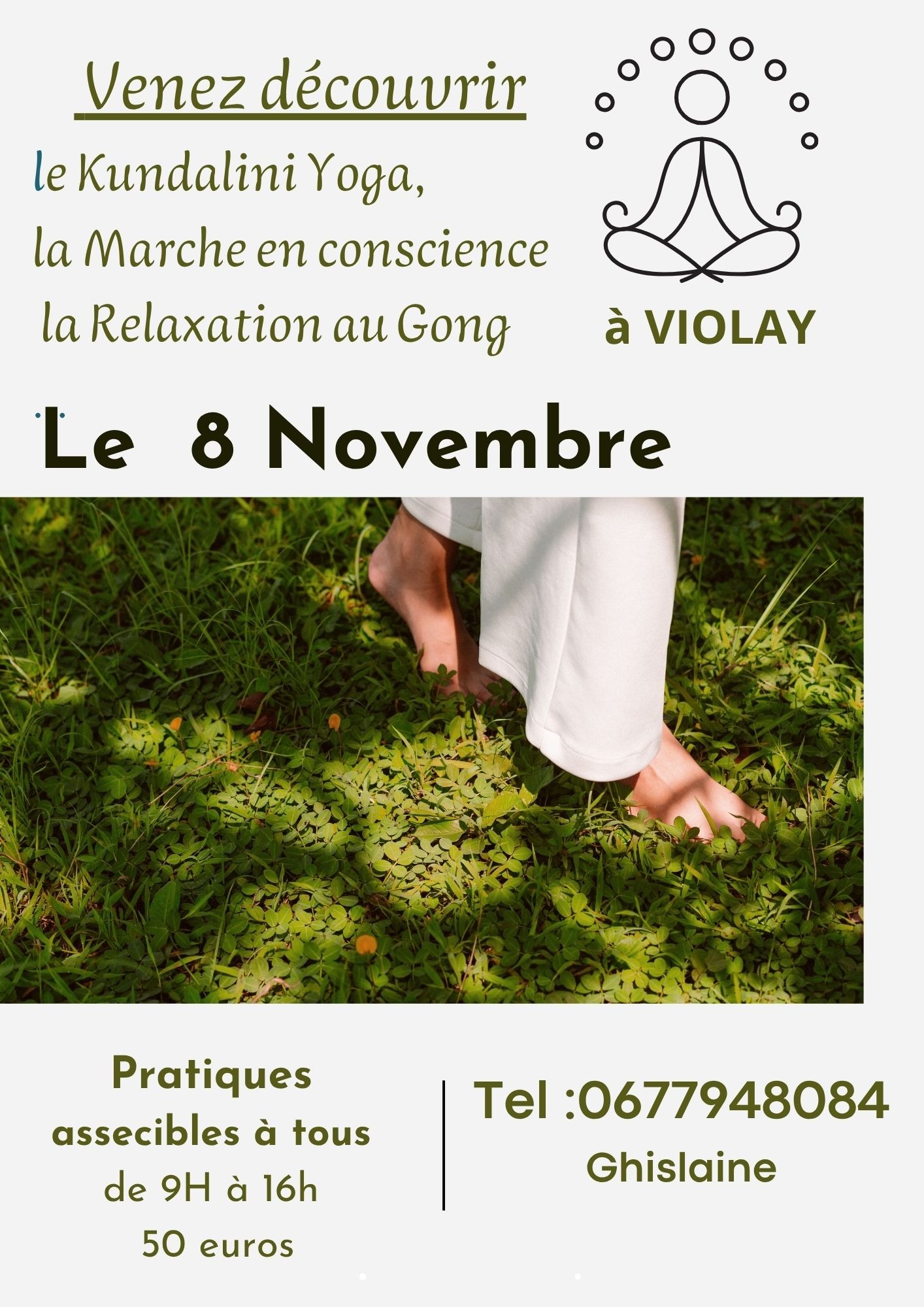 Marche ,pranayama (respiration consciente) yoga doux et relaxation au Gong.