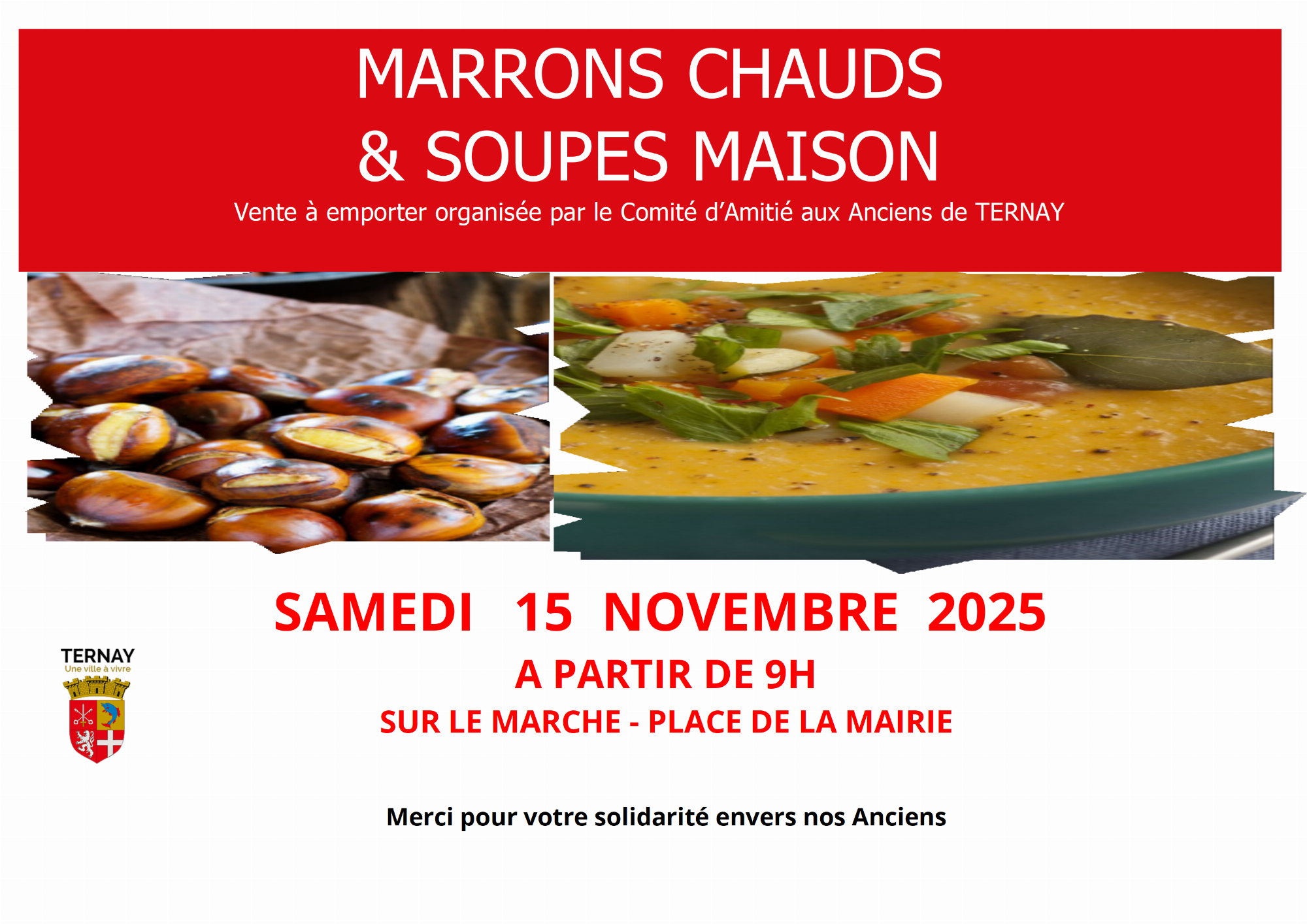 marrons chauds, soupes maison, pâtisseries au profit des Anciens