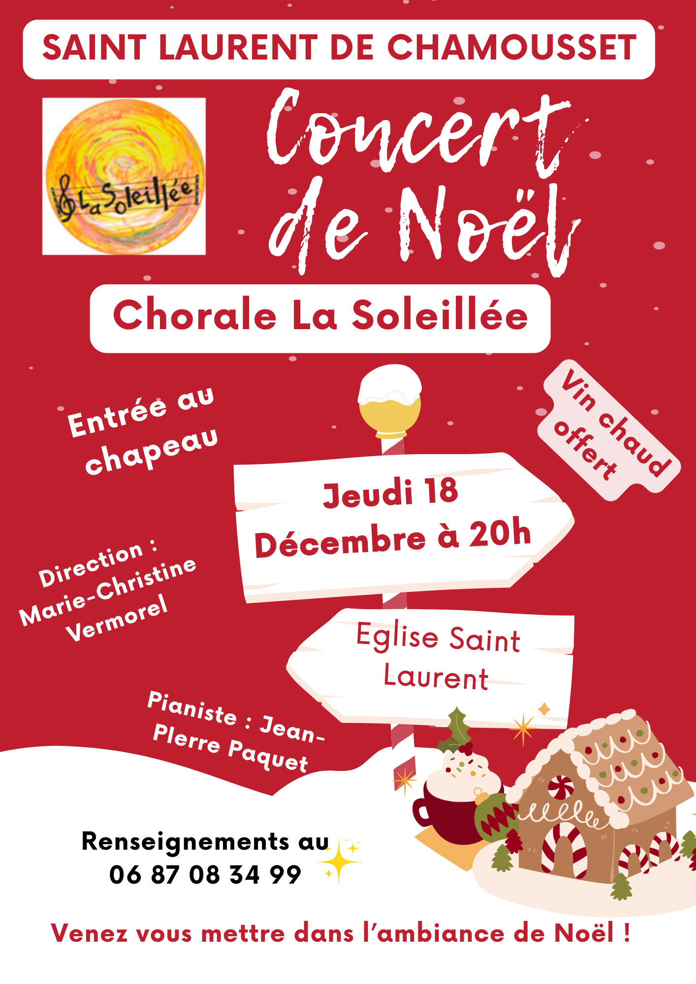 Comme chaque année, la chorale " la Soleillée" vous convie à son concert de Noël. Au programme chants de Noël traditionnels et contemporains. Nous vous attendons nombreux afin de partager avec vous un moment convivial et le plaisir de chanter ensemble.