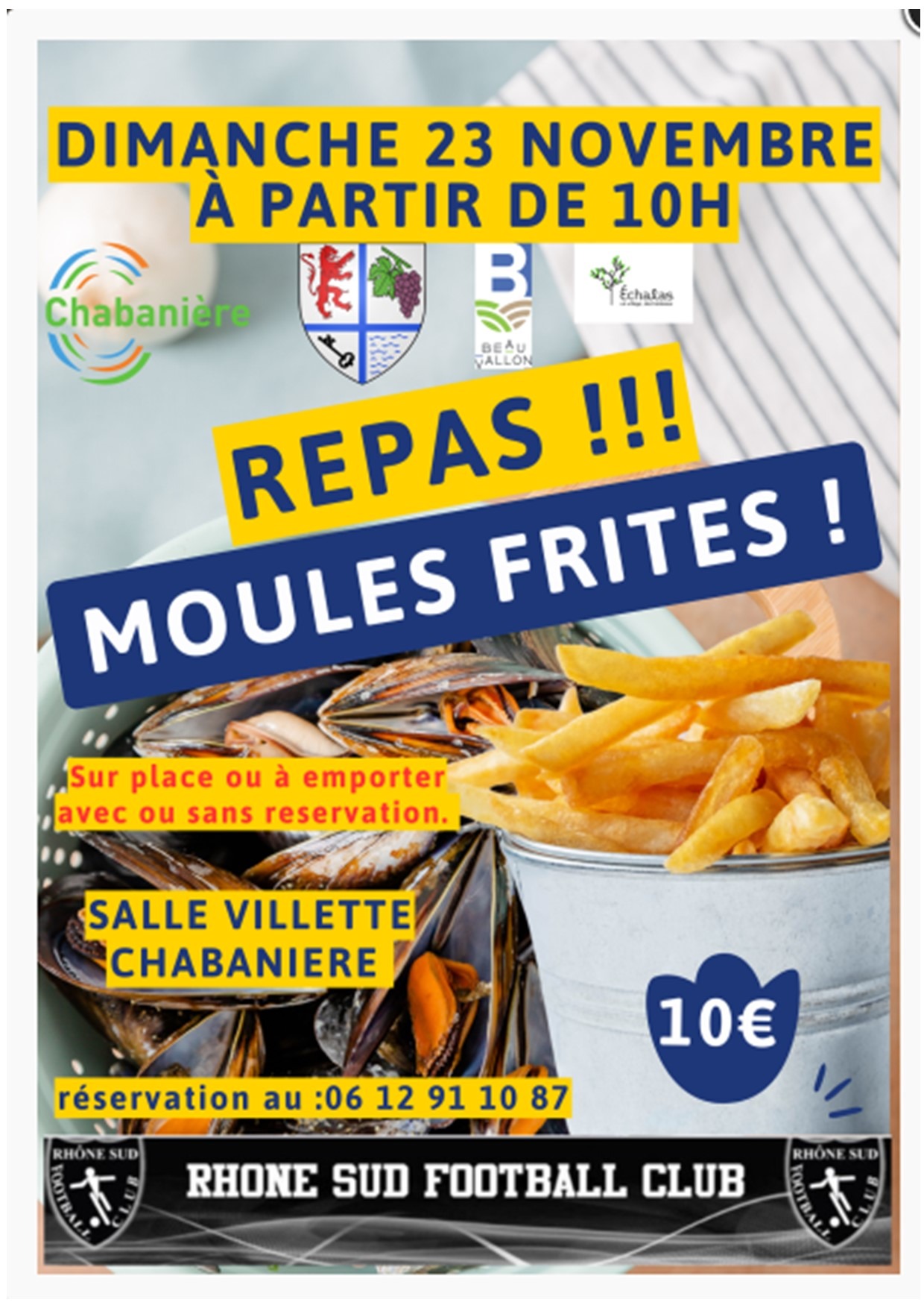 Le Rhône Sud Football Club oragnise une "matinée moules frites". Sur place ou à emporter. Avec ou sans réservation.