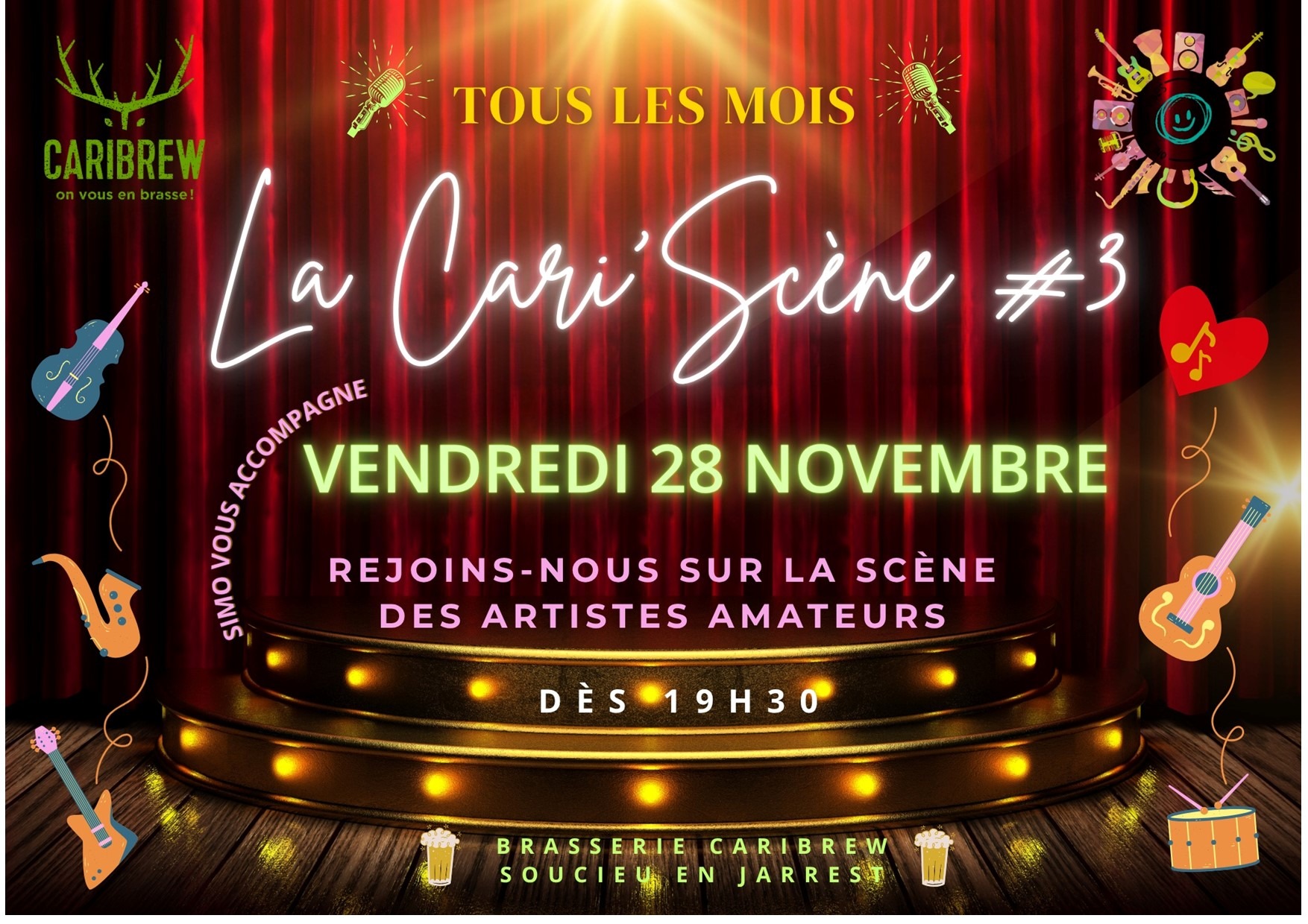 La Cari'Scène : rejoins-nous sur la scène des artistes amateurs, tout en dégustant les bières de la brasserie Caribrew.