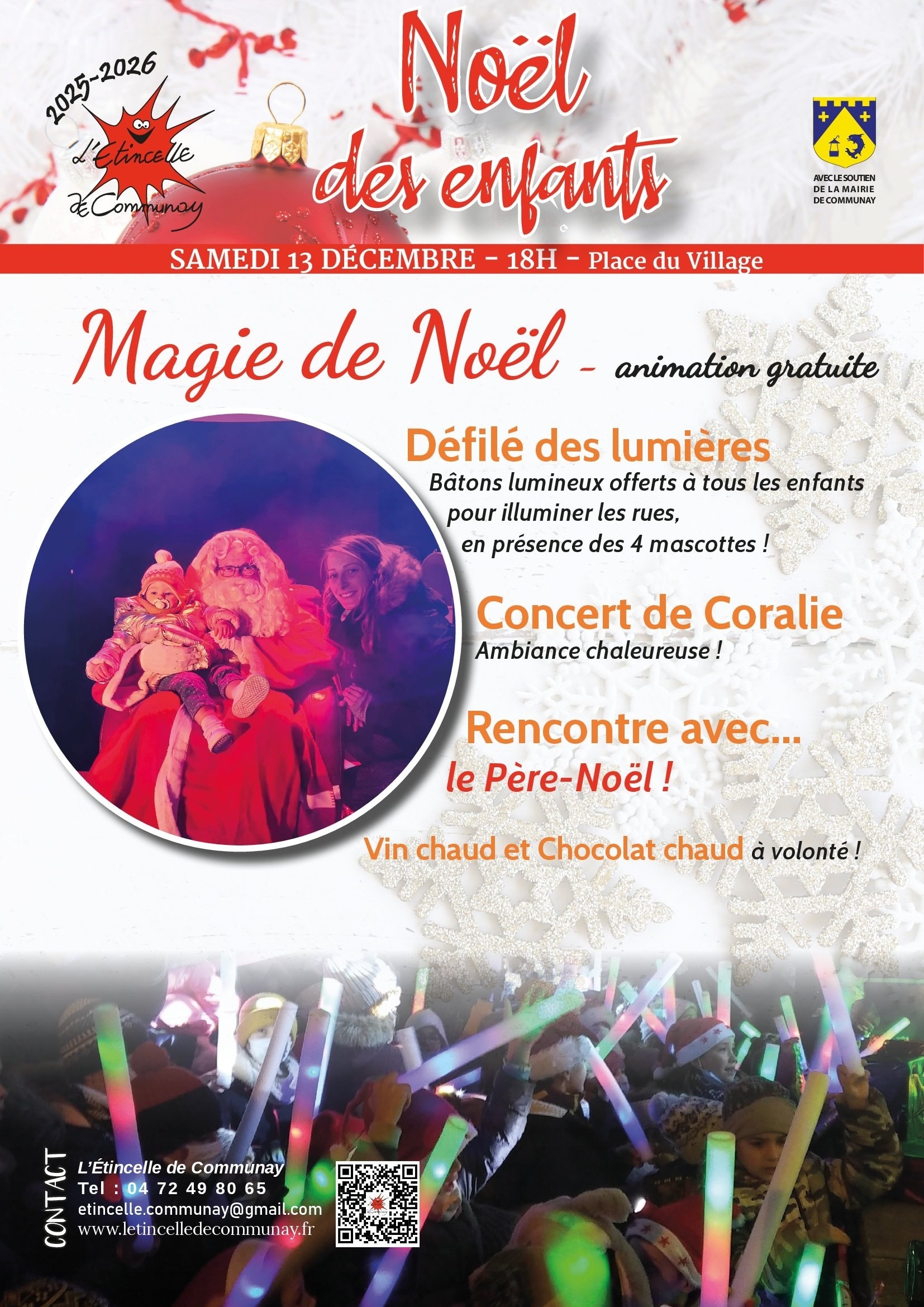 L'Étincelle de COMMUNAY vous invite à partager un moment féerique lors de la Fête de Noël des Enfants, le samedi 13 décembre à 18h00, sur la place de la Mairie.