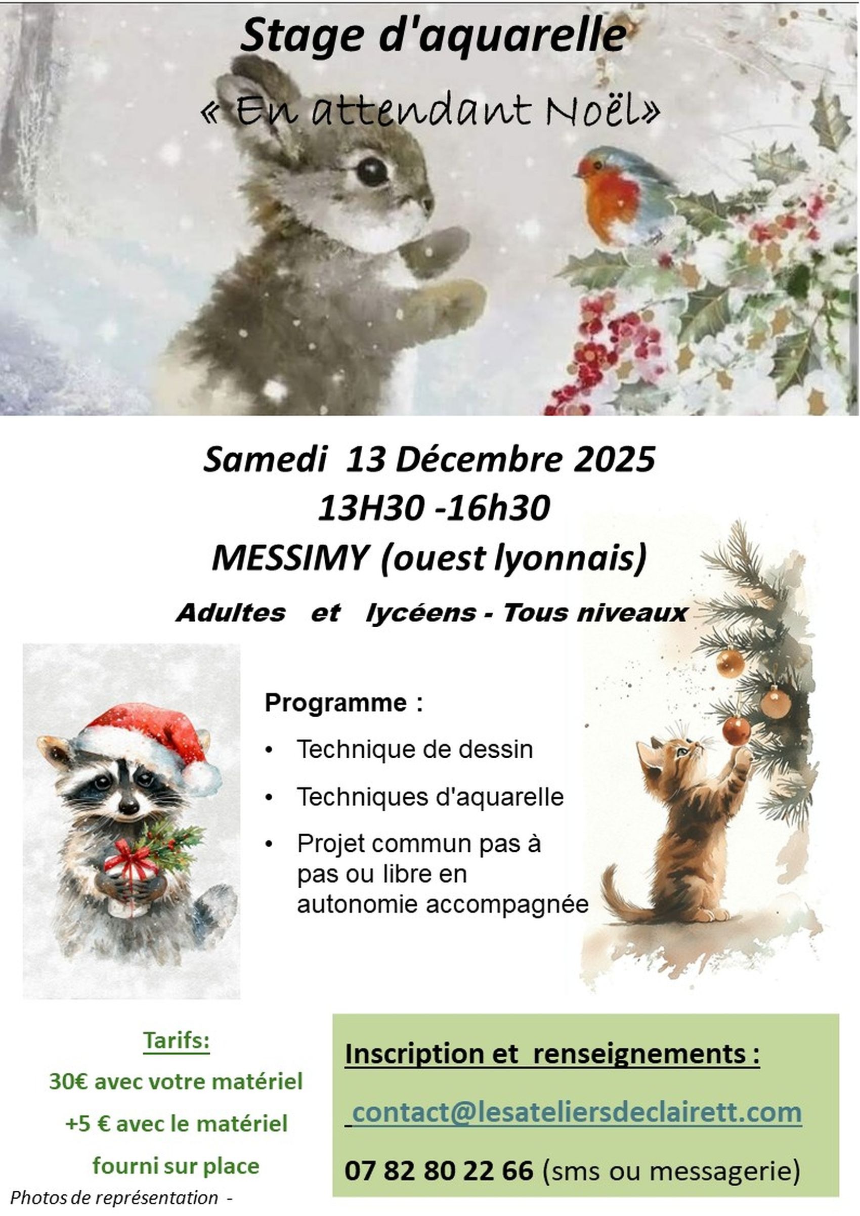 Pendant trois heures, nous explorerons ensemble l’univers de l’aquarelle à travers des petits illustrations poétiques sur l’hivers et les fêtes de fin d’année : animaux tout mignons, feuillages givrés, branchages, décorations de sapin et autres symboles qui évoquent l’attente joyeuse de cette période. Chacun pourra trouver son ambiance, sa palette, son style.