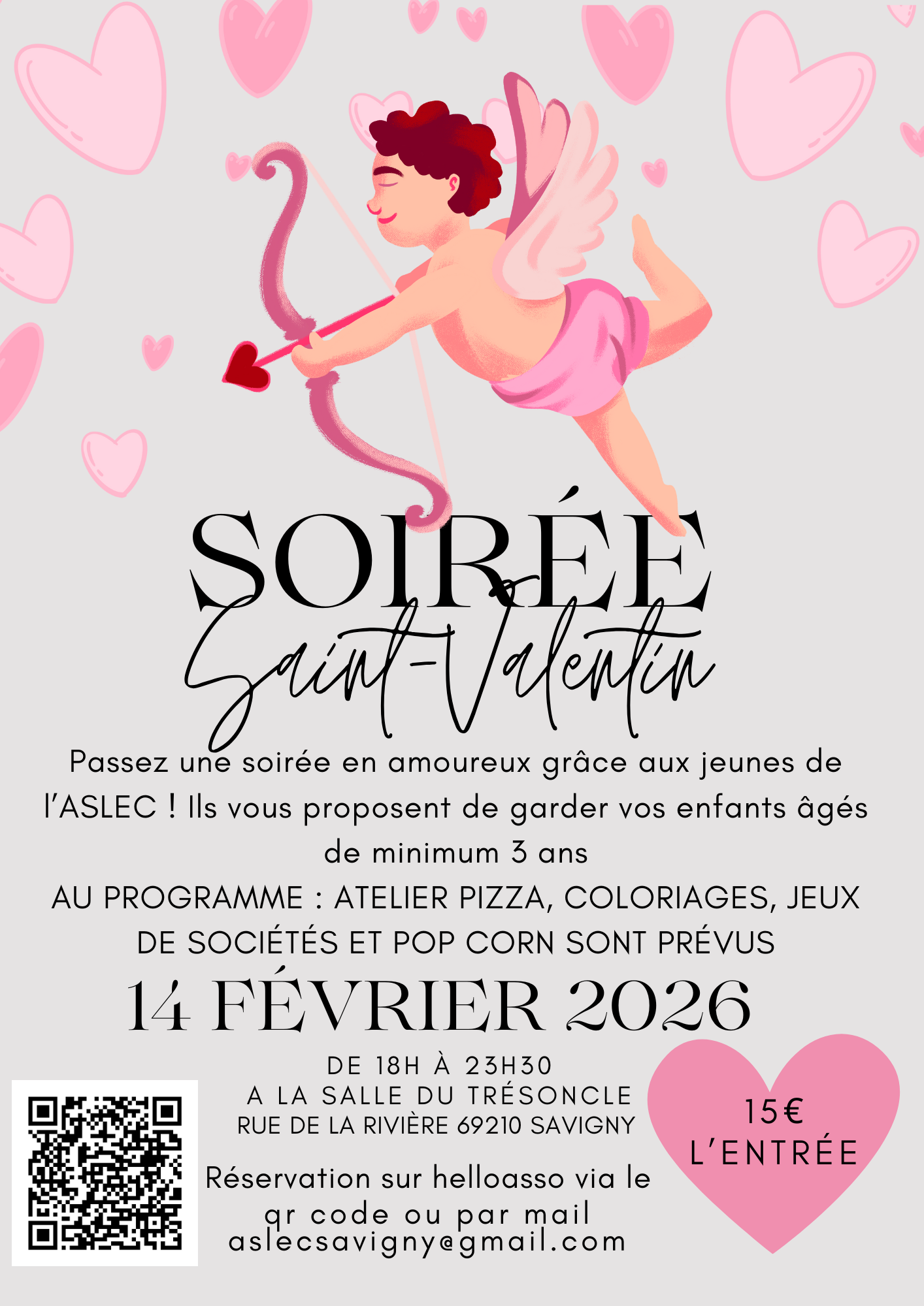 Passez une soirée en amoureux grâce aux jeunes de l’ASLEC ! Ils vous proposent de garder vos enfants âgés de minimum 3 ans. Au programme : atelier pizza, coloriages, jeux de sociétés et pop corn sont prévus