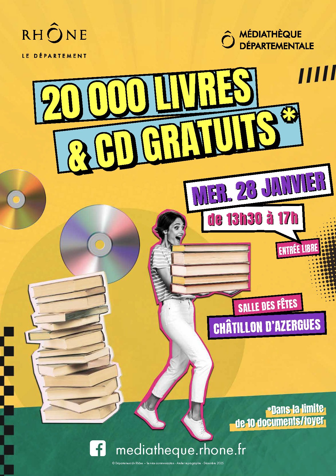Albums, contes, poésies, bandes dessinées, romans, polars, CD… sont issus des collections et des réserves de la Médiathèque départementale. Profitez-en, et repartez avec jusqu’à 10 documents par personne ou par foyer. Tout doit disparaître ! Entrée libre et gratuite. L’animation musicale sera assurée par l’École de musique des pays du Bois d'Oingt. Le "désherbage" est une nécessité pour la Médiathèque départementale comme pour toutes les bibliothèques. Derrière ce terme technique se cache une mission essentielle des bibliothécaires. Afin que les collections restent attractives, actuelles et en bon état, il est nécessaire de retirer régulièrement certains ouvrages des rayons et des collections. Désherber ne signifie pas détruire. C’est un acte de gestion qui permet de réguler et de vivifier les collections.