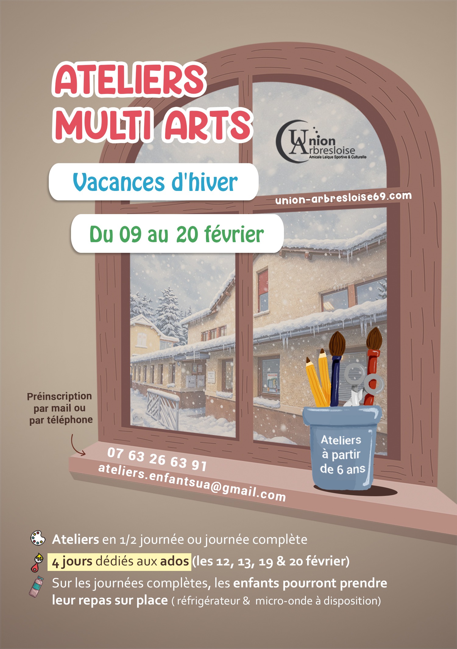 À l’occasion des vacances d'hiver, l'Union Arbresloise a le plaisir d'accueillir vos enfants à nos ateliers multi-arts.