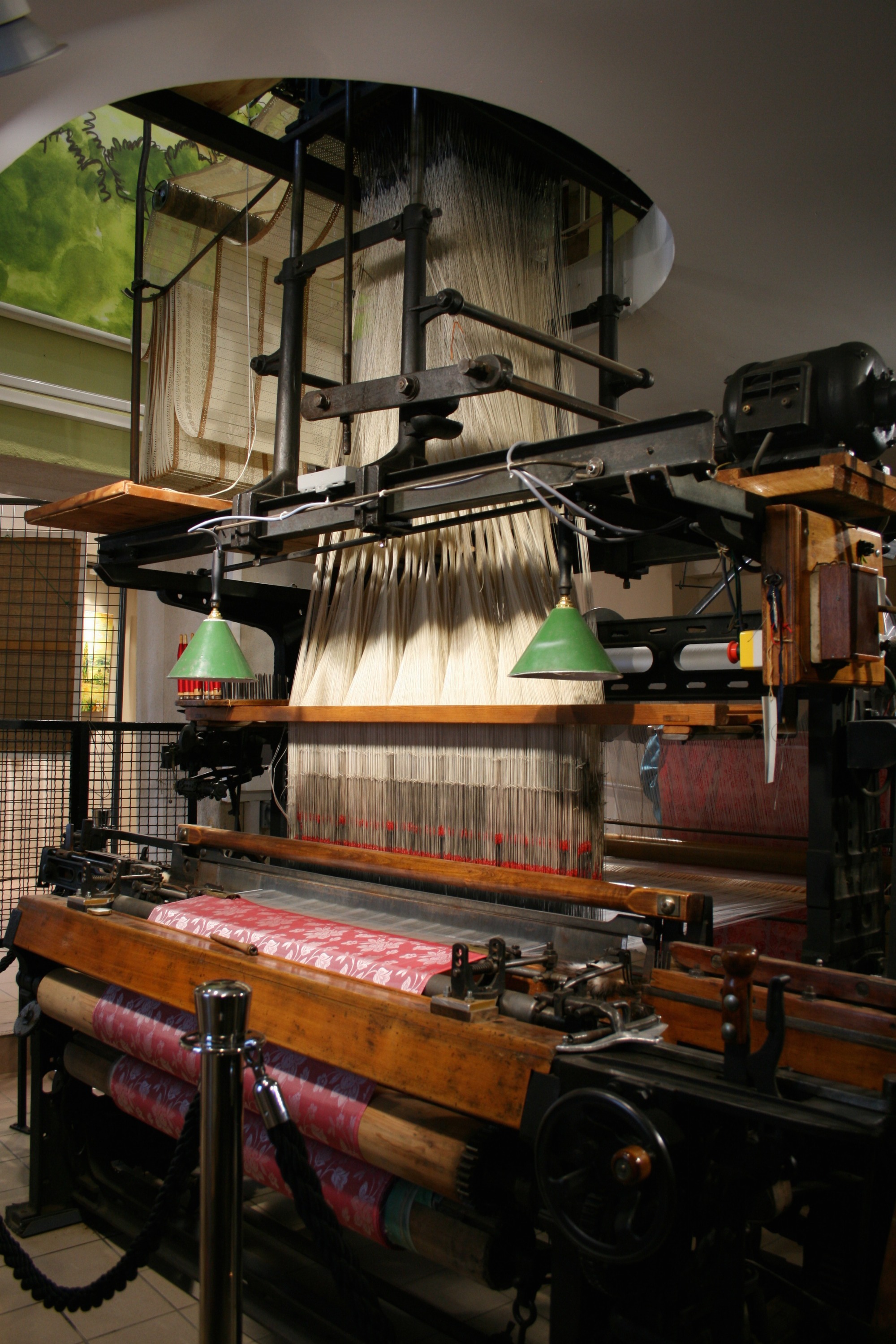 Démonstration de tissage sur métier mécanique de plus d'un siècle et explication de son fonctionnement.