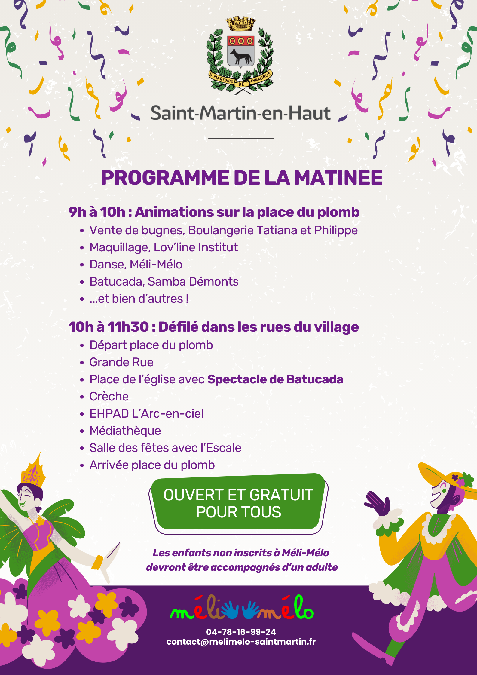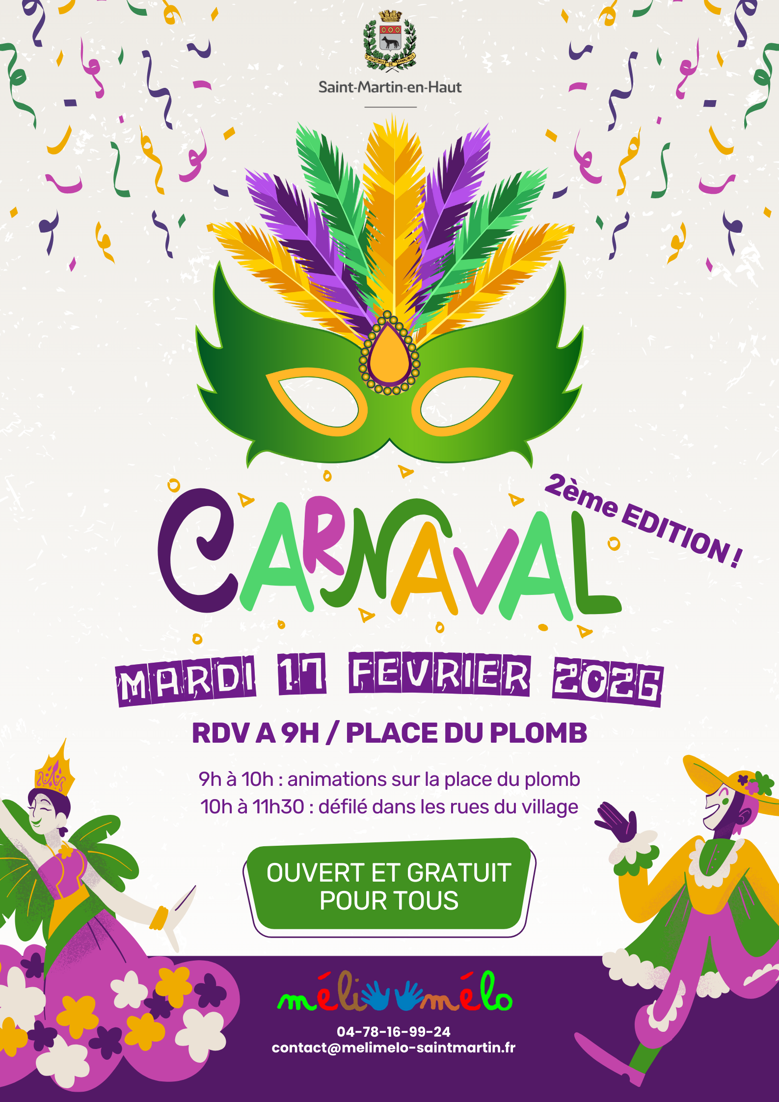 De retour pour cette deuxième édition, le carnaval de Saint-Martin-en-Haut vous attend nombreux pour un défilé haut en couleurs ! Petits et grands, venez déguisés et défilés dans les rues du village avec nous !