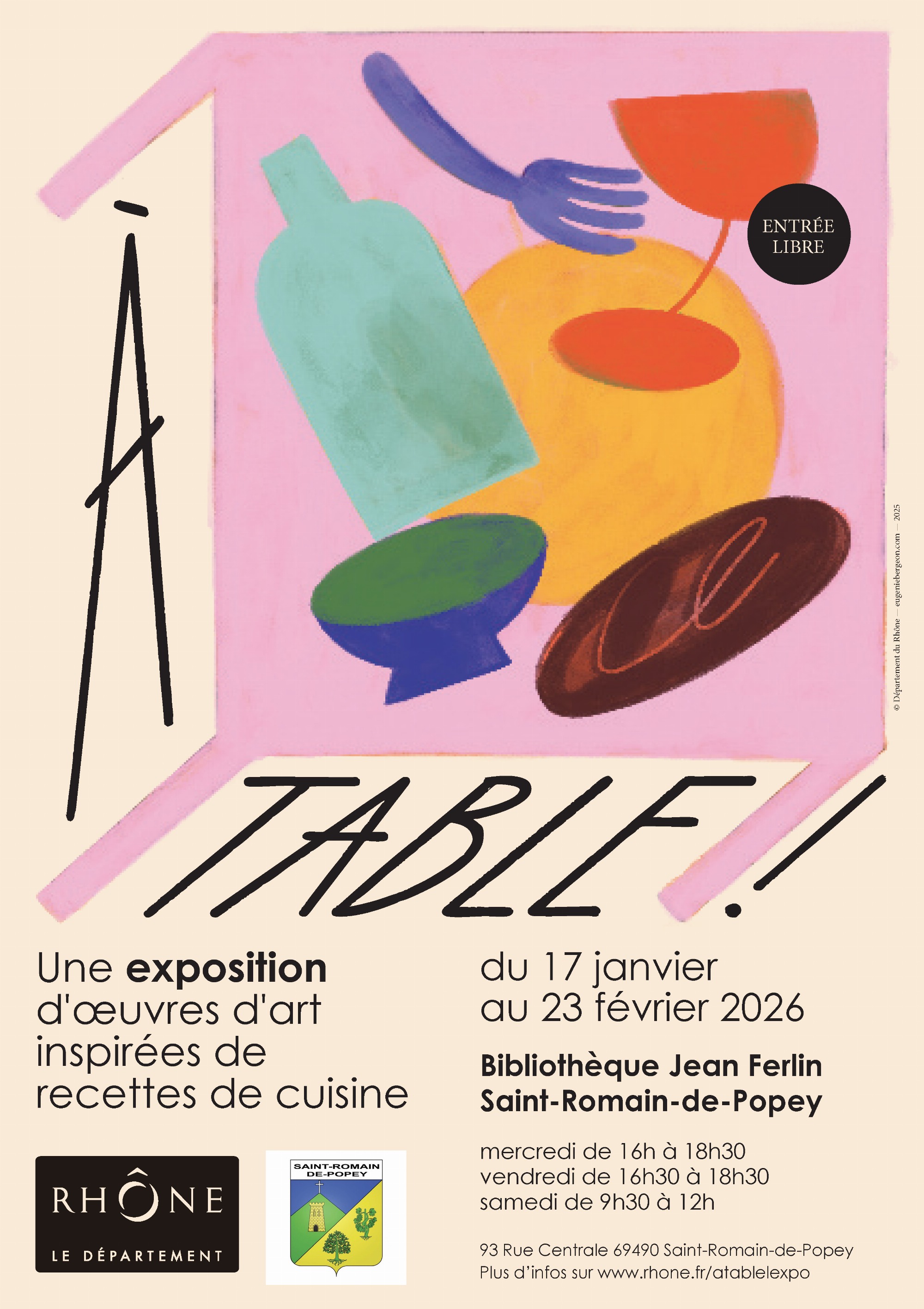 Découvrez une exposition itinérante proposée par le Département autour d'oeuvres d'art réalisées par des artistes locaux, inspirées de recettes de cuisines. L'exposition temporaire prend place à la bibliothèque Jean Ferlin de Saint-Romain-de-Popey.