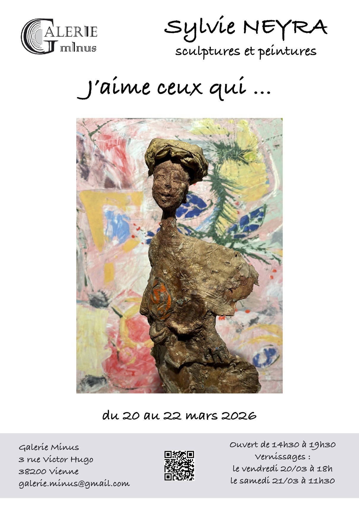 Exposition des sculptures et peintures de Sylvie Neyra à la Galerie Minus intitulée "J'aime Ceux Qui..."