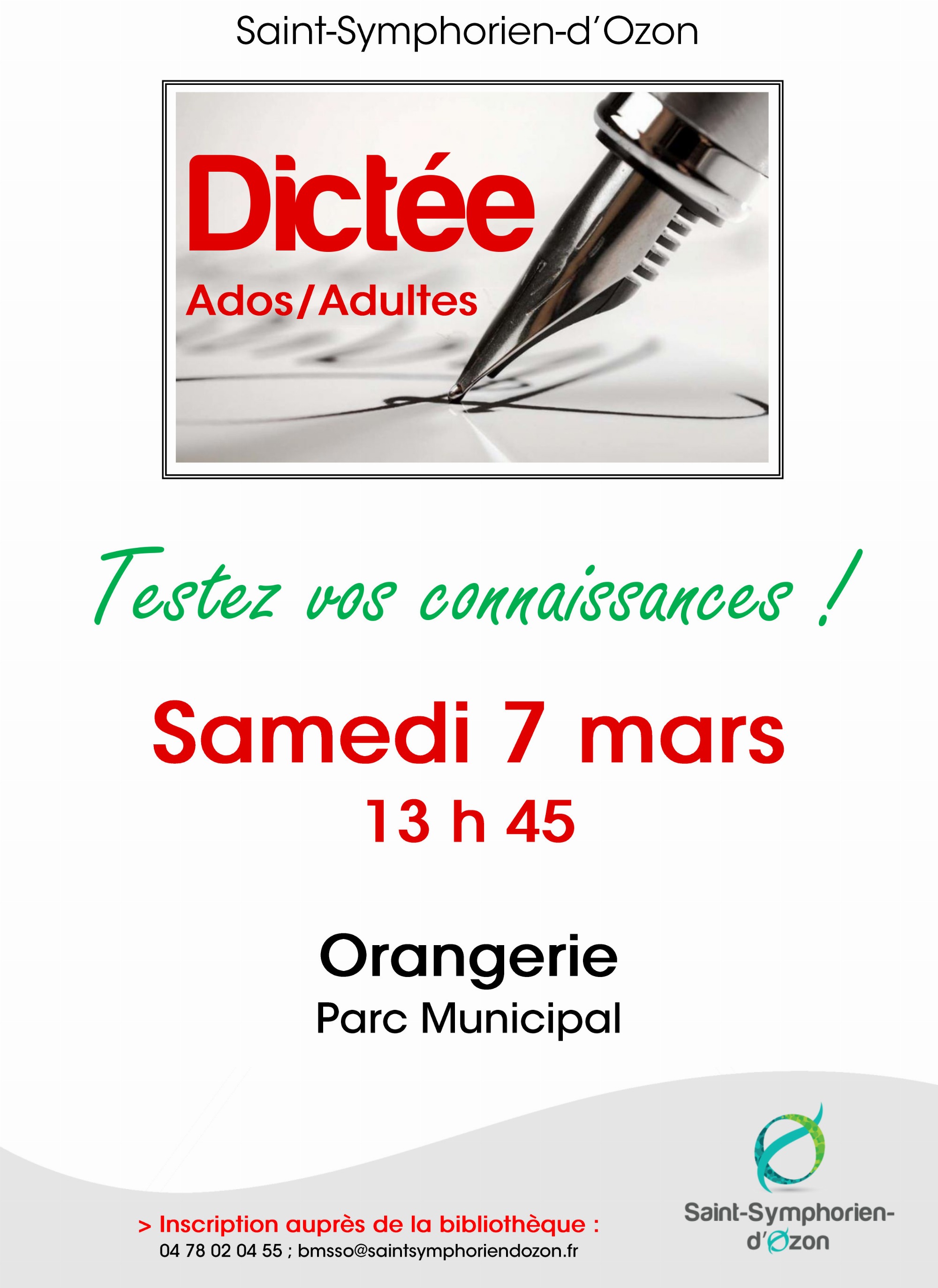 Venez tester vos connaissances avec la dictée pour adolescents et adultes ! Gratuit - Sur inscription auprès de la bibliothèque municipale.