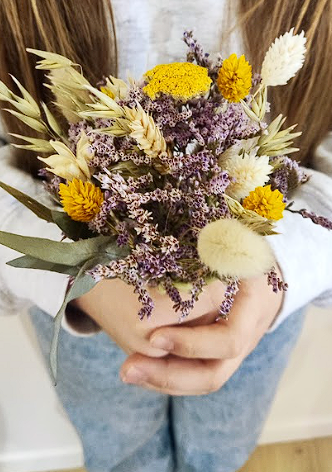 Accompagnés par Nathalie, de l'Atelier Ornela, les enfants réalisent leur propre bouquet de fleurs séchées, guidés avec bienveillance, pour offrir un cadeau fait main, durable et rempli d’amour à leur maman.