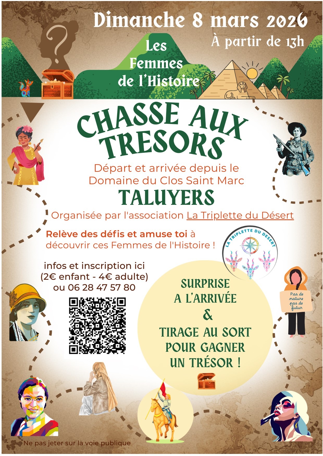 Inscriptions via : https://www.helloasso.com/associations/la-triplette-du-desert/evenements/chasse-aux-tresors-les-femmes-de-l-hisoire?