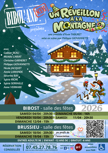 Nous vous proposons la comédie burlesque «Un Réveillon à la montagne» d’Yvon Taburet : un réveillon où rien ne va se passer comme prévu… De quoi révéler la personnalité et les réactions de chaque protagoniste.