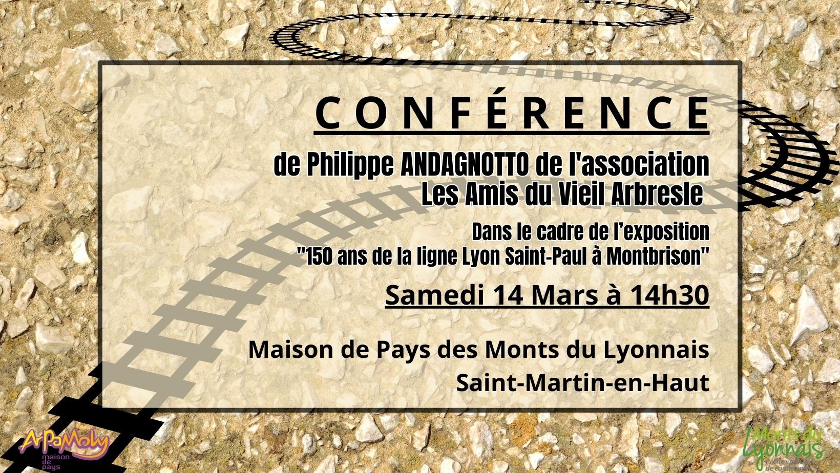 Conférence de Philippe ANDAGNOTTO de l’association Les Amis du Vieil Arbresle, le 14/03 à 14h30. Il fera une présentation sur les frères MANGINI, le réseau de la Compagnie des Dombes et du Sud Est et sur les lignes départementales de L’ouest Lyonnais.