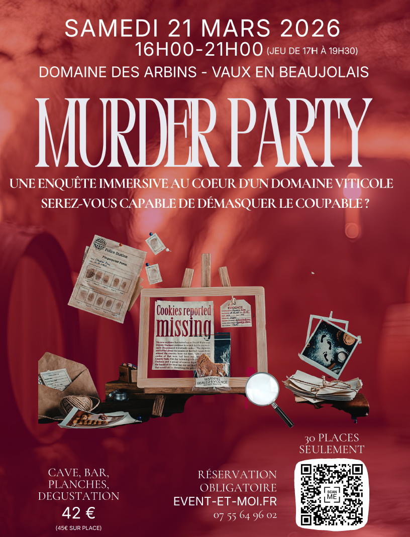 Event & Moi vous invite à vivre une expérience immersive unique : une Murder Party organisée dans la cave du Domaine des Arbins, en plein Beaujolais.