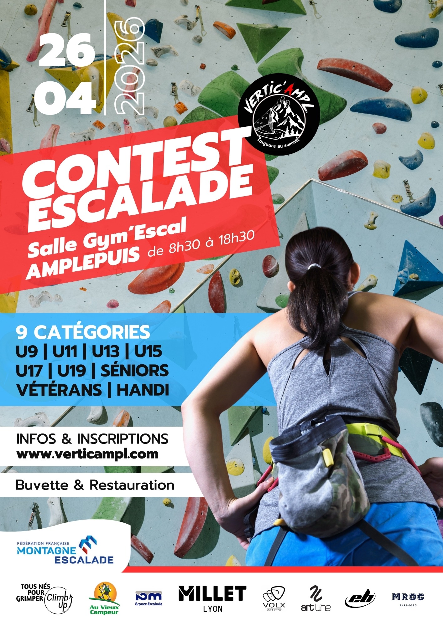 Venez participer au Contest d’escalade de Vertic'Ampl à Amplepuis ! Neuf catégories pour tous les âges, buvette et restauration sur place.