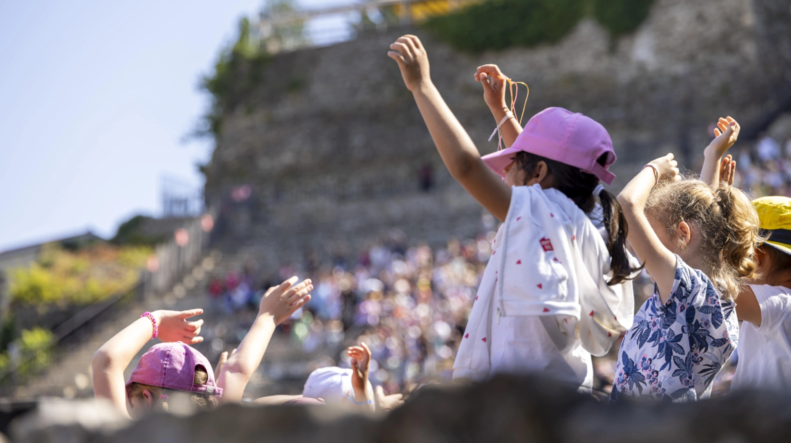 8 000 élèves des classes primaires du territoire envahissent les gradins du Théâtre Antique pour assister aux premières représentations dʼune création imaginée spécialement pour le festival. À travers cette création, l’idée est de sensibiliser le jeune public à la musique jazz, mais aussi d'offrir la possibilité aux artistes de créer un spectacle interactif et ludique, de transmettre un savoir et un parcours musical, tout en valorisant un patrimoine culturel dans une ambiance chaleureuse. Enseigner, partager, transmettre, comprendre, ressentir, sensibiliser, sont les objectifs de ce projet original et ambitieux dédié aux enfants.