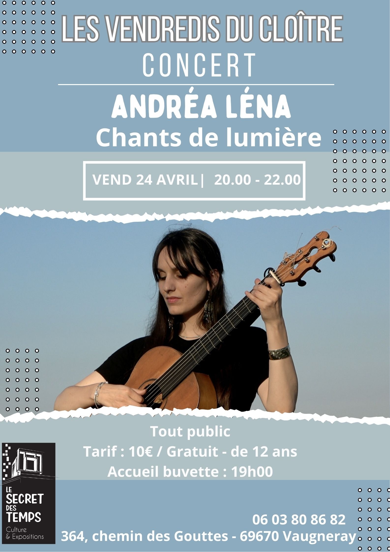 A la croisée des musiques profanes et sacrées, Andréa fait résonner les chants traditionnels d’Occident pour inonder le monde de beauté et de douceur.