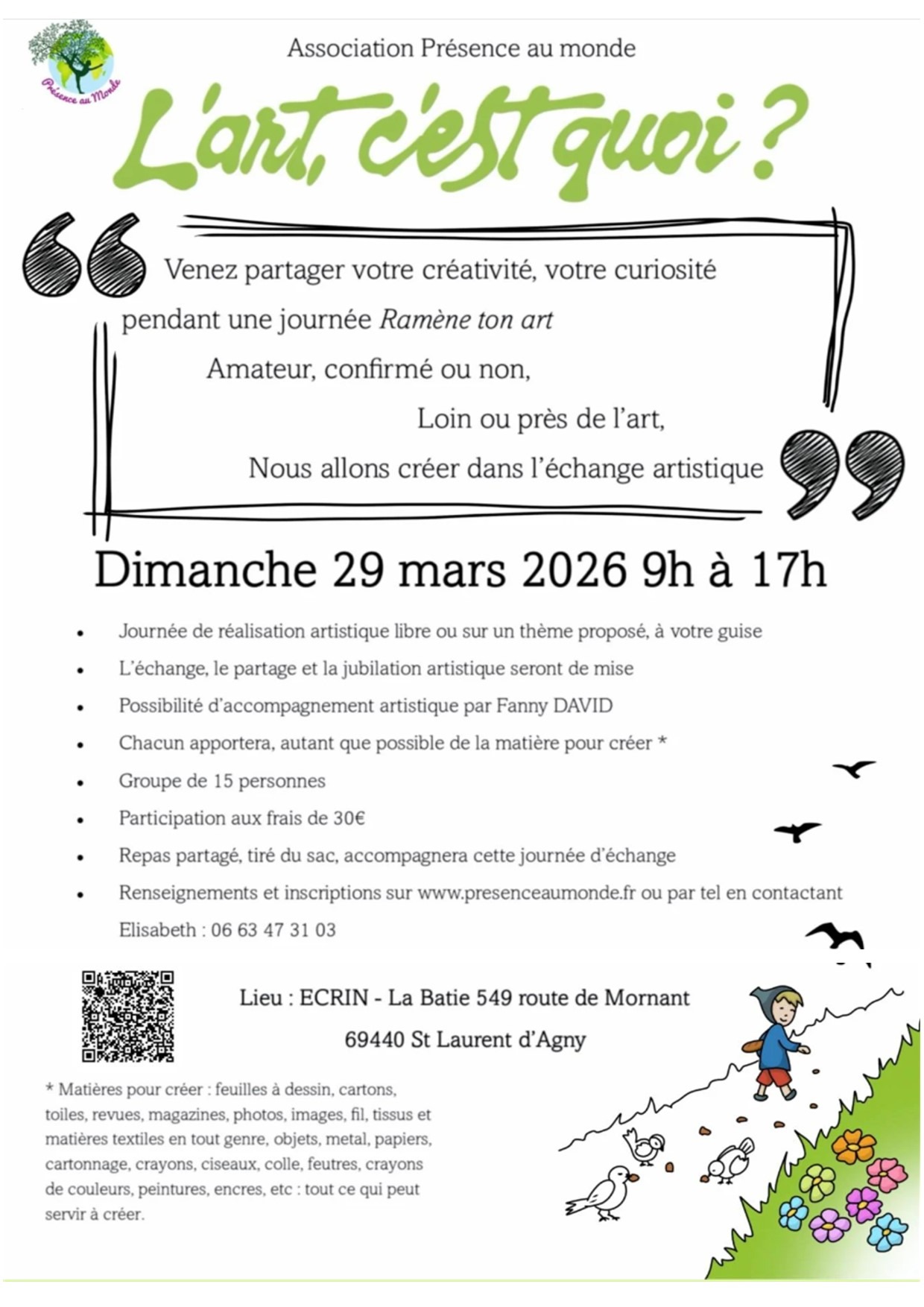 Cette atelier est proposé par l'association "Présence au Monde".