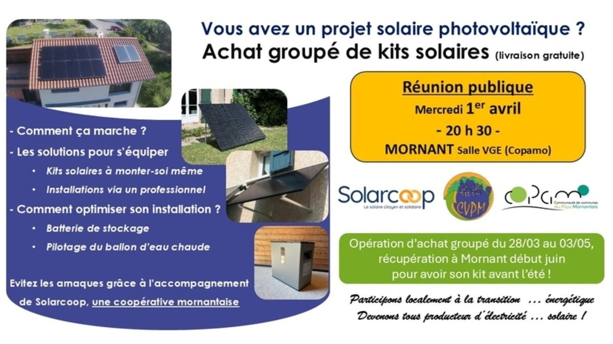 Avoir son matériel avant l’été Lancement d’une opération d’achats groupés du 28/03 au 3/05, avec livraison gratuite à Mornant début juin. Accompagnement pour définir sa commande.