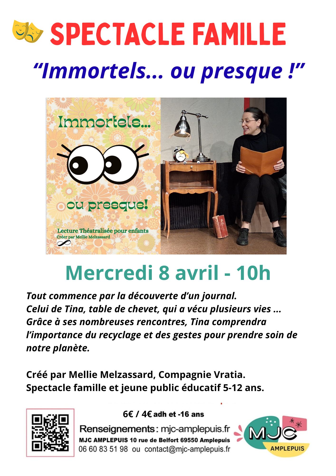 Spectacle famille et jeune public éducatif 5-12 ans. 6€ / 4€ adh et -16 ans.