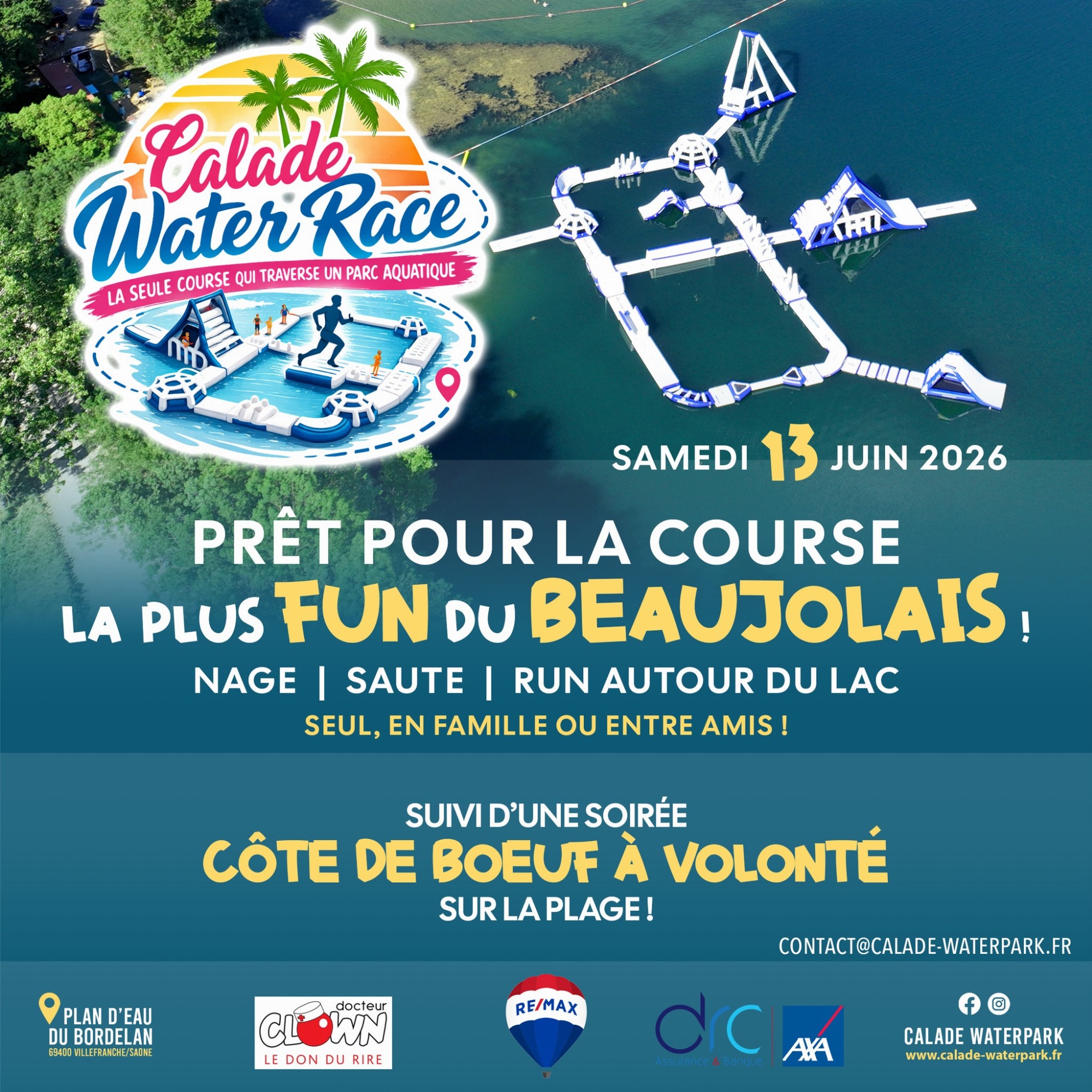 Plongez dans la Calade Water Race le 13 juin à Villefranche ! Aqua-run inédit (nage, structures géantes, course) suivi d'une soirée festive "Côte de Bœuf à volonté" au bord du lac. 3 parcours de 2,5 à 10km pour relever le défi !