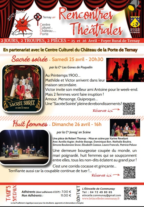 Sacrée Soirée par la Compagnie Les Gones de Poquelin le samedi 25 avril Huit Femmes par la Compagnie Jonag'en Scène le dimanche 26 avril