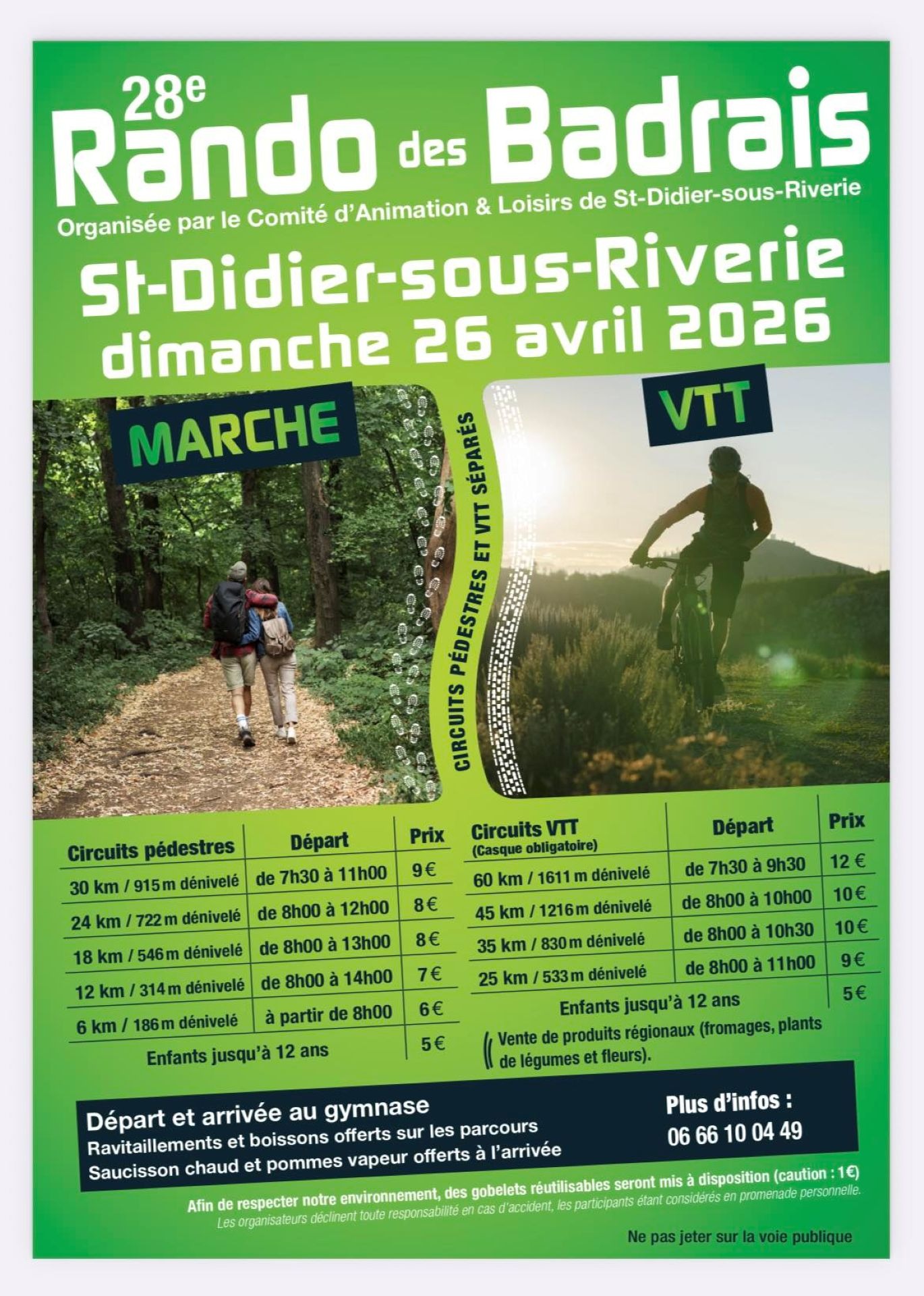 28e rando des Badrais organisé par le Comité d'Animation & Loisirs de St-Didier-sous-Riverie. Circuits pédestres et VTT séparés.